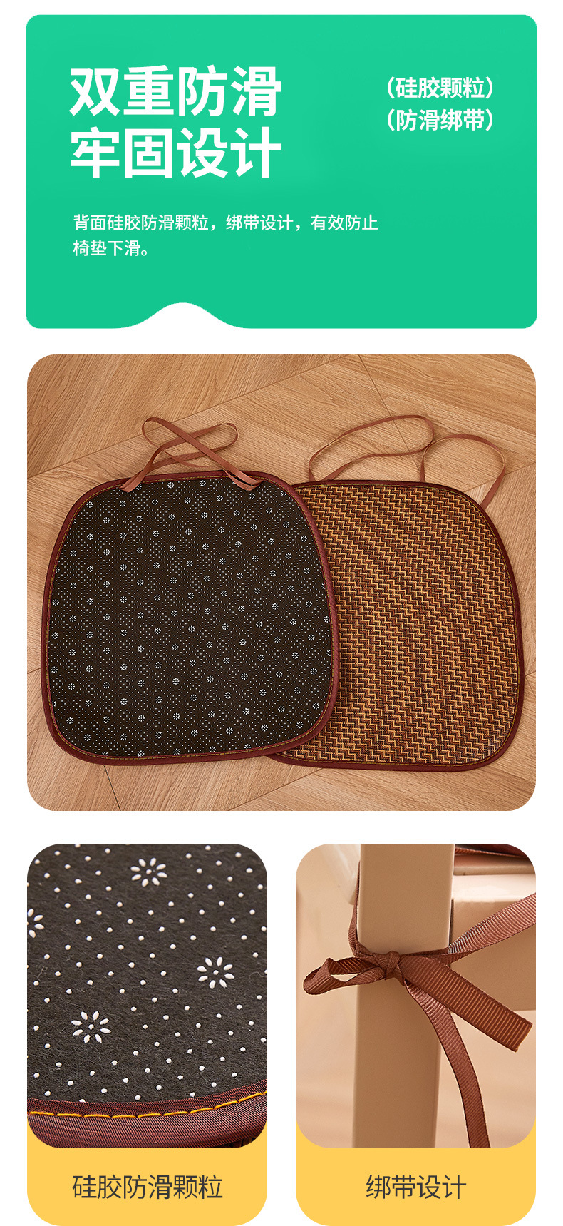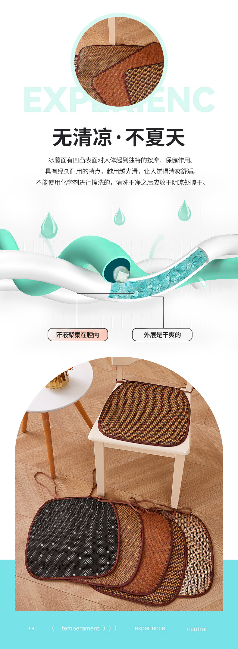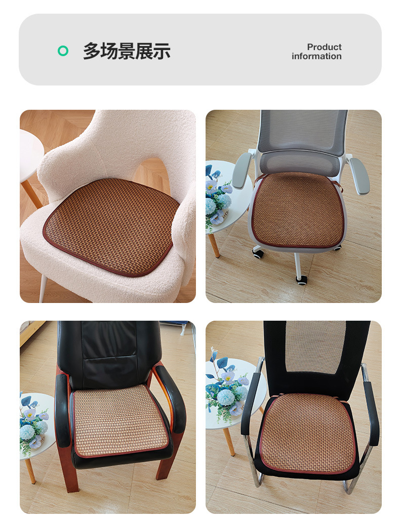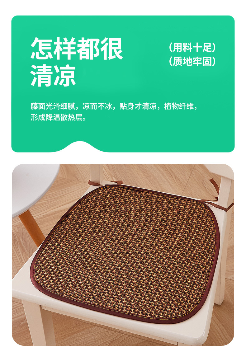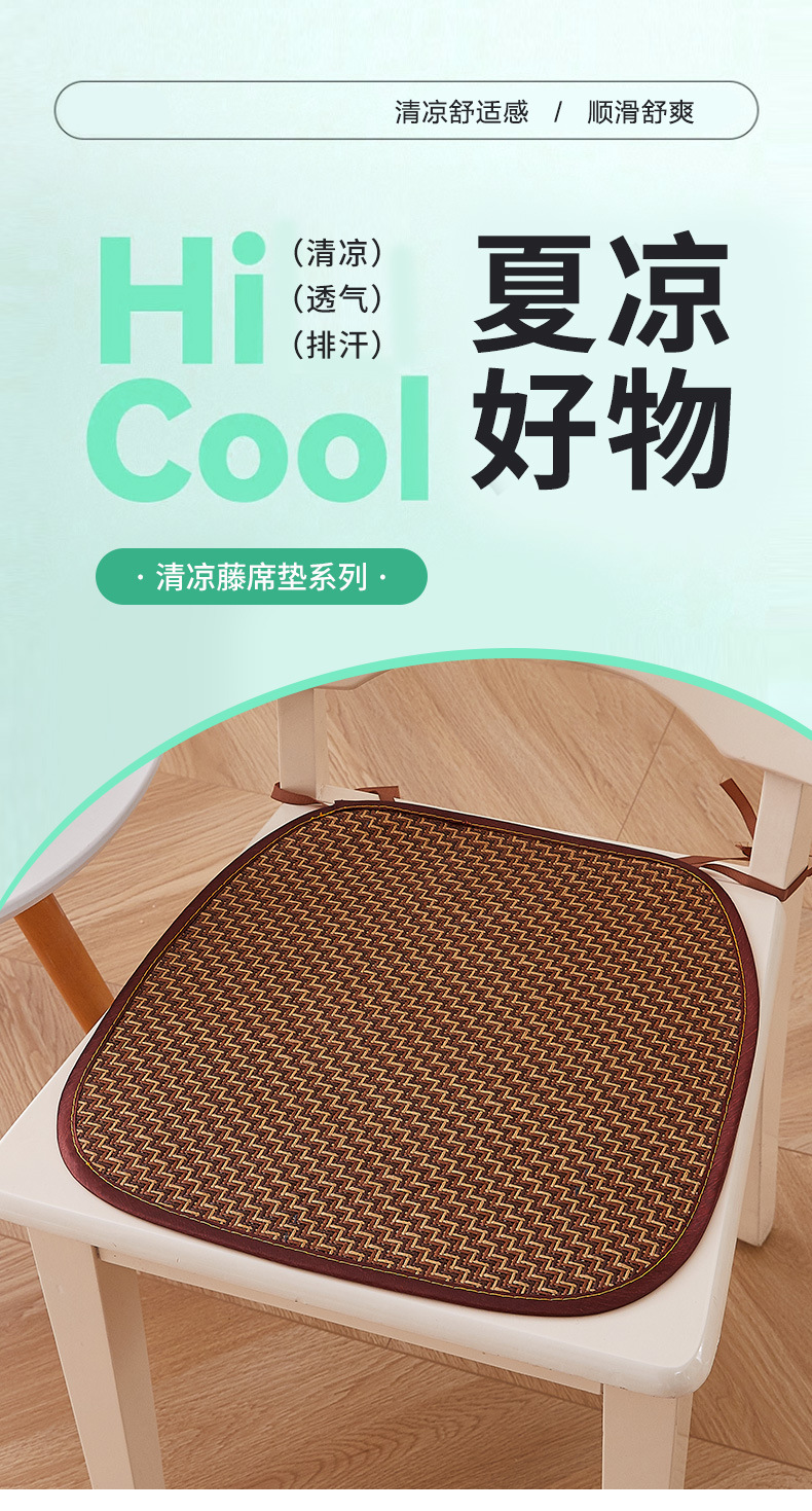 「四款可选!夏凉冰藤椅垫」简约藤编凉席坐垫 学生办公室马蹄形冰丝凉感坐垫居家日用布艺
