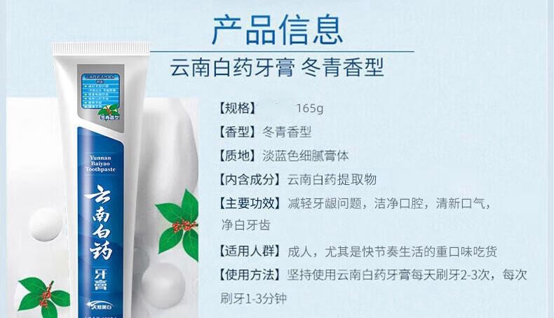 【自营】 云南白药 冬青香型 减轻牙龈问题洁齿亮白 牙膏165g