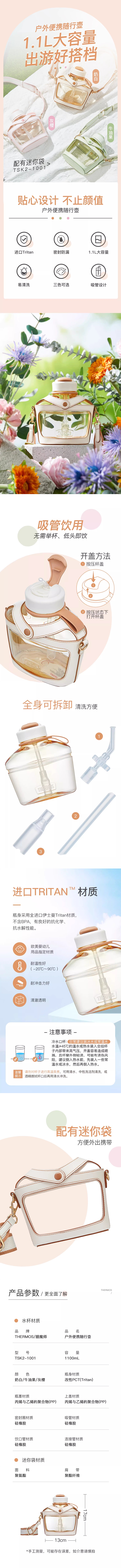 【4月】膳魔师冷水吸管瓶TSK2-1001【7F童床】[广百北京路店]