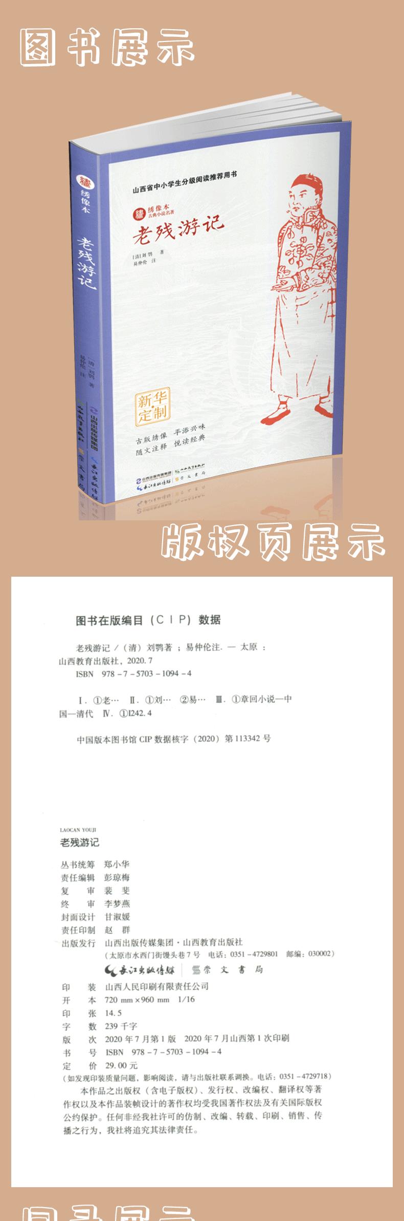 老残游记 山西省中小学生分级阅读推荐用书 中国古典章回小说