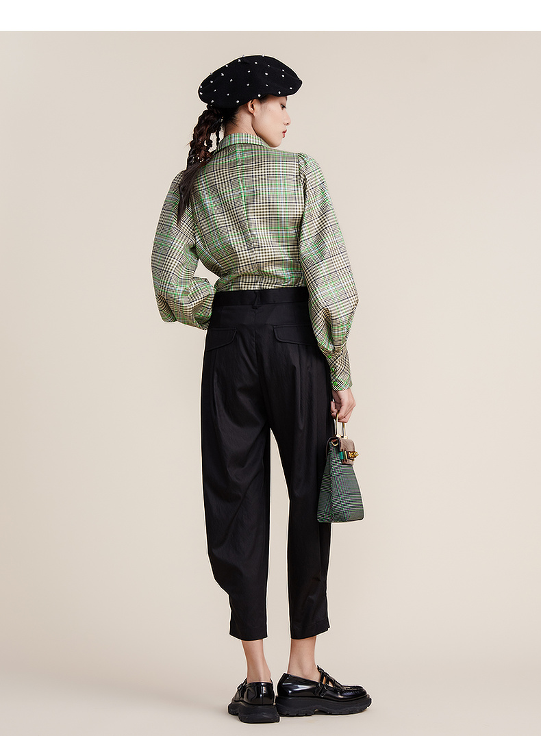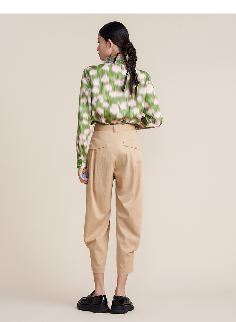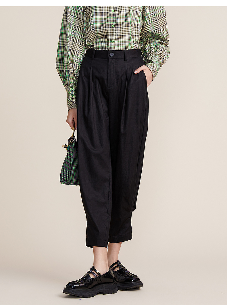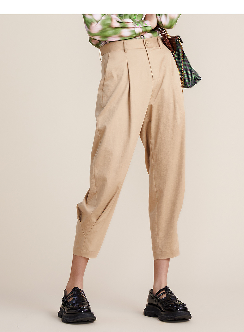 谜底2022春款简约高级脚口收褶哈伦裤宽松天丝休闲裤女221MK0007
