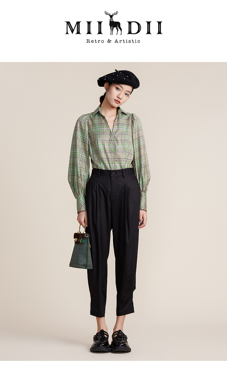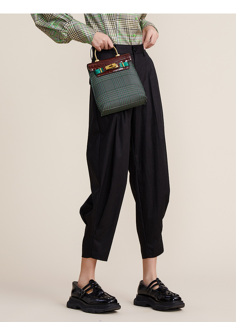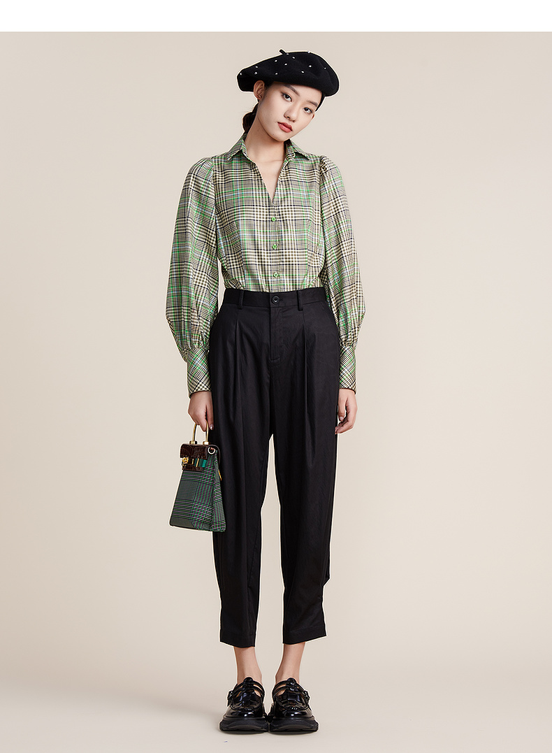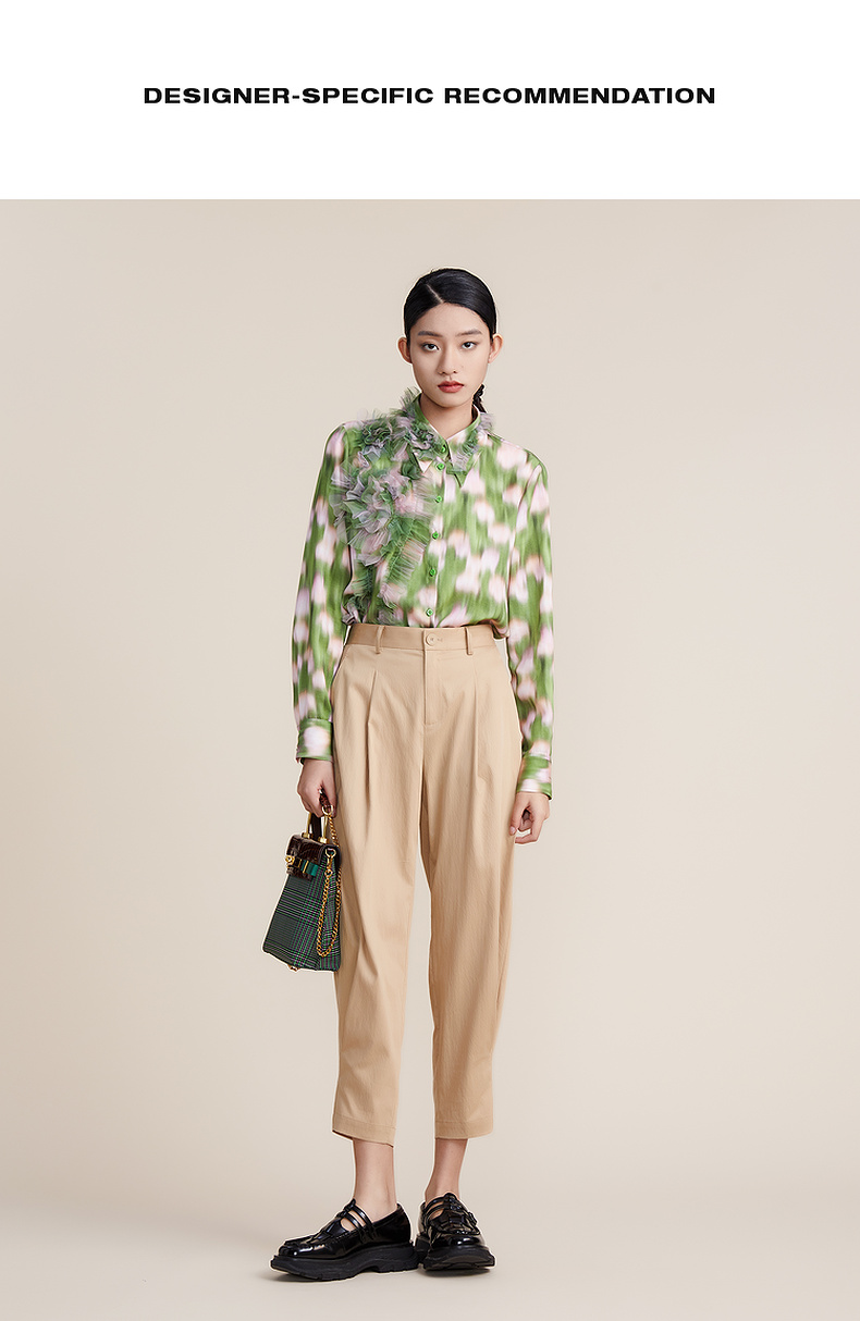 谜底2022春款简约高级脚口收褶哈伦裤宽松天丝休闲裤女221MK0007