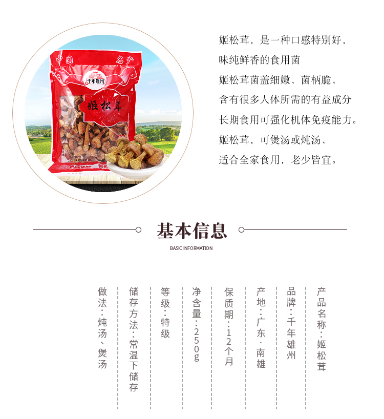 【韶关帮扶】千年雄州姬松茸 250g