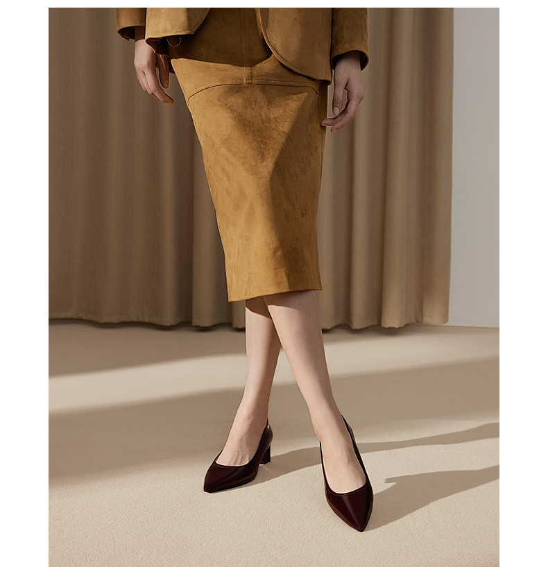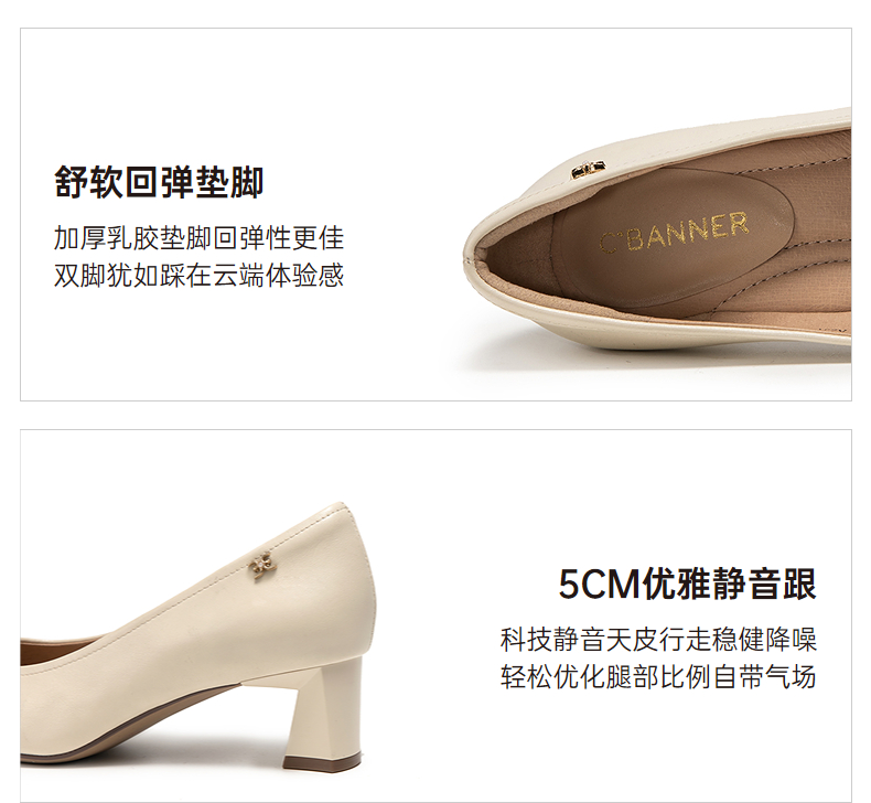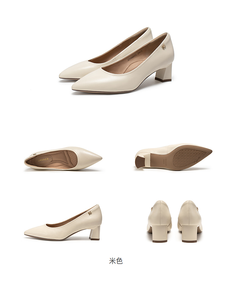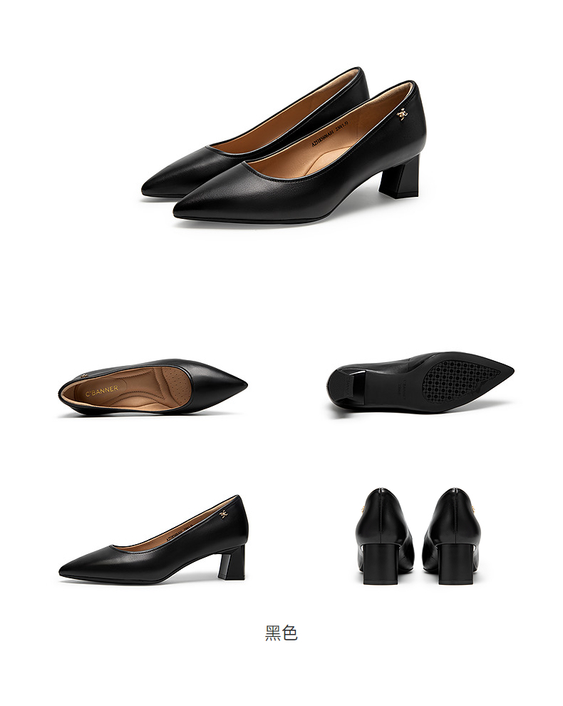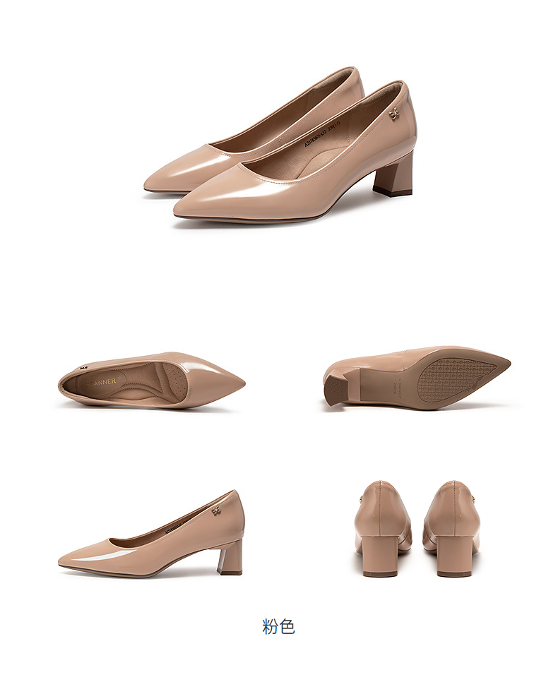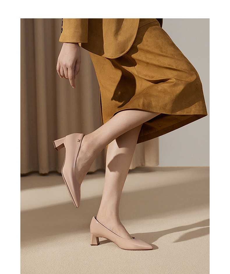 【静音系列】千百度裸色粗高跟鞋女套包工艺舒适通勤羊皮浅口单鞋A25185605