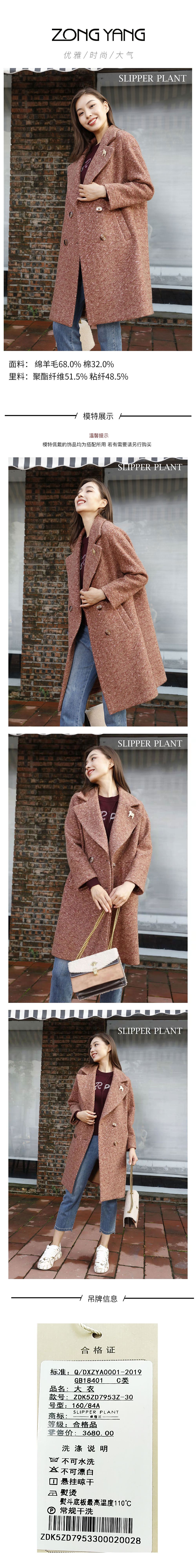 宗洋&卓蔻兰 女士中长款时尚宽松大衣ZDK5ZD7953Z-30