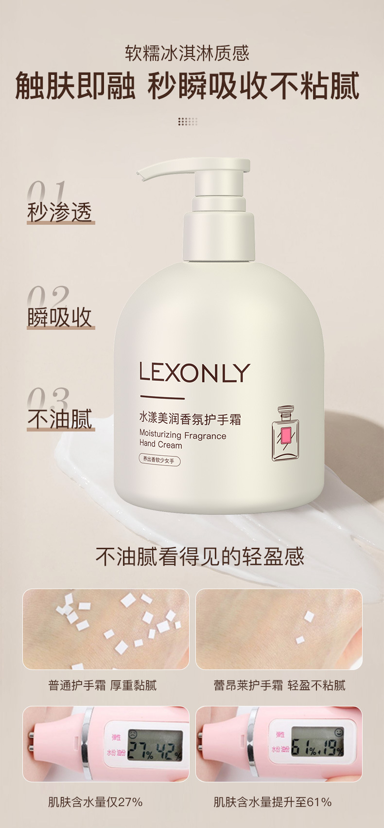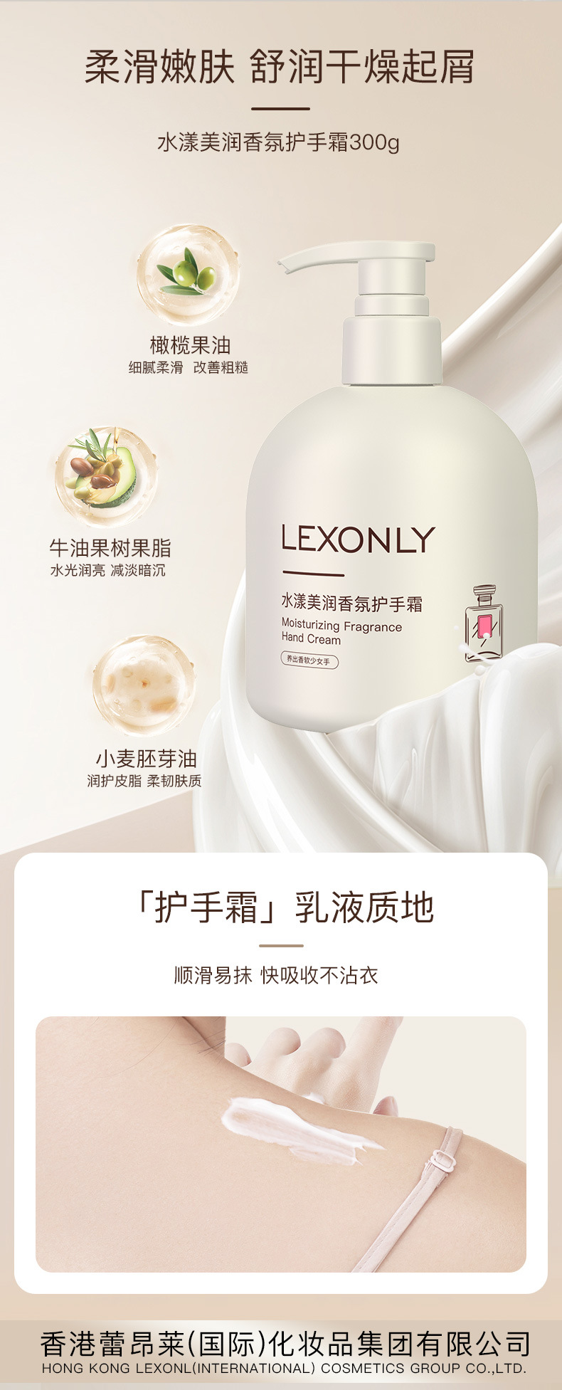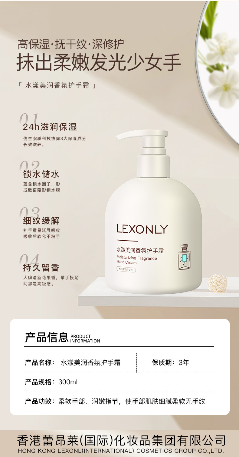 蕾昂莱水嫩香氛护手霜滋润保湿秋冬防冻防干裂大容量护手乳