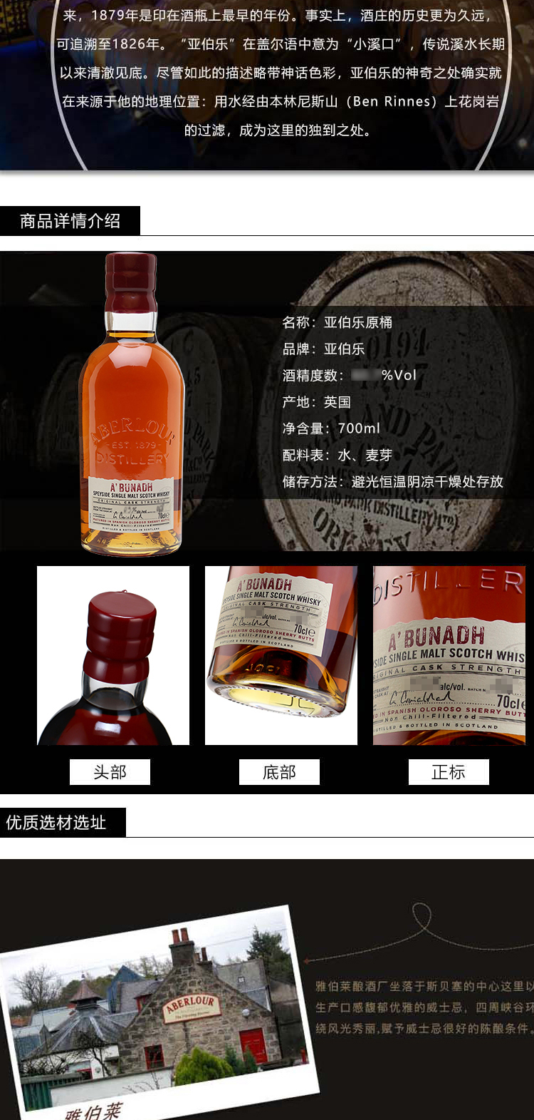 亚伯乐阿布纳圆桶单一麦芽威士忌 700ml