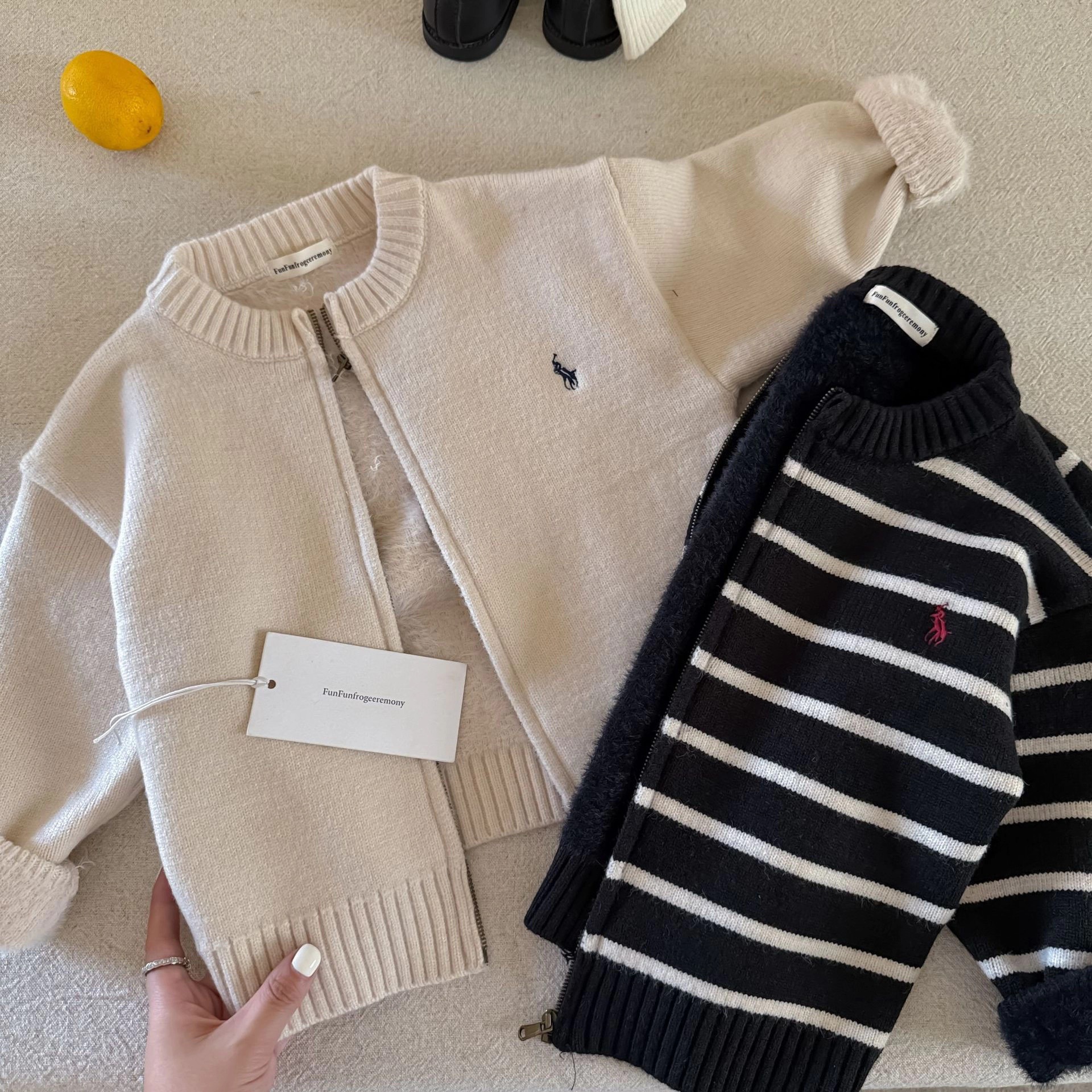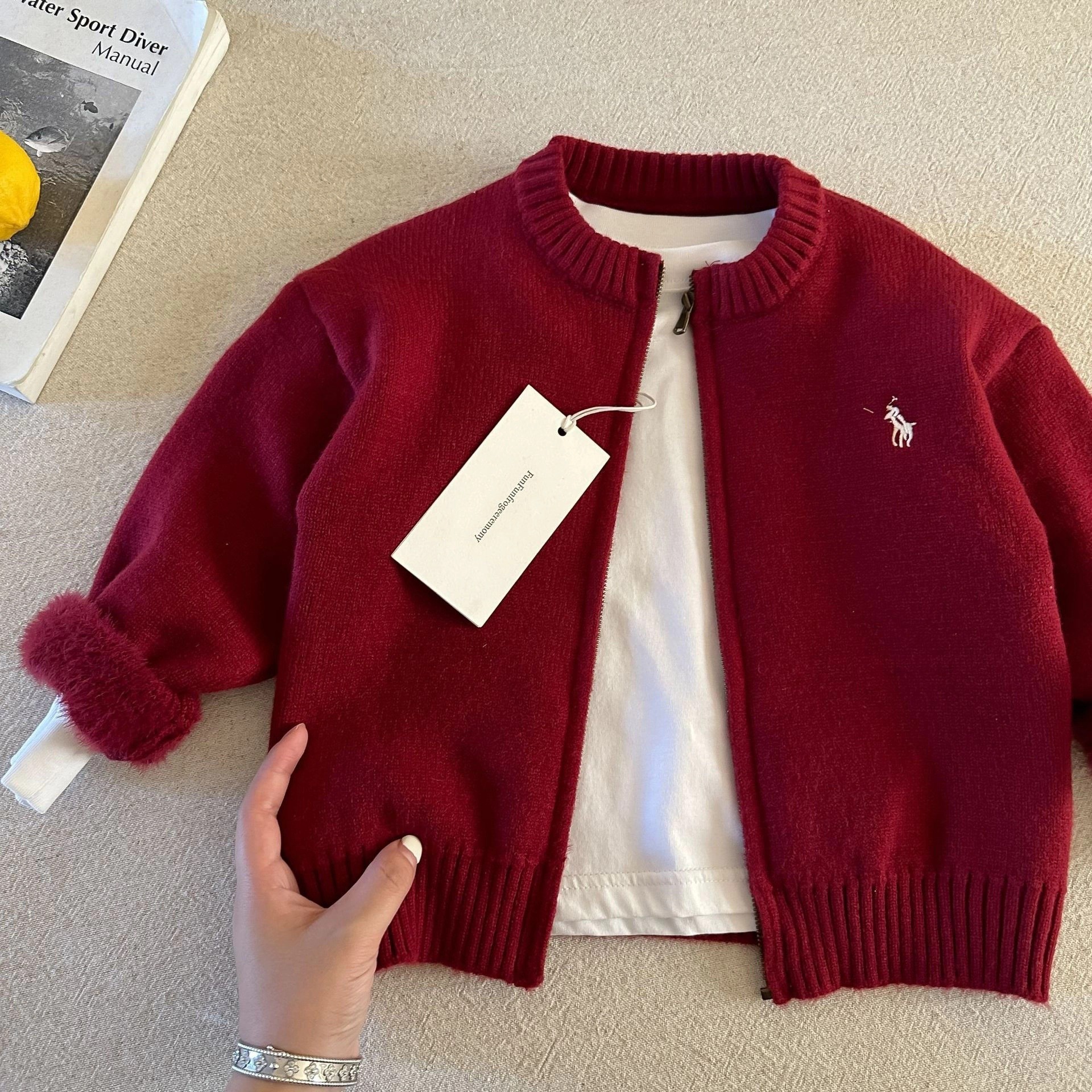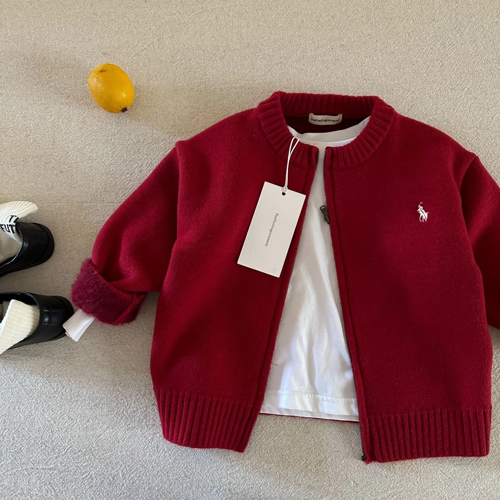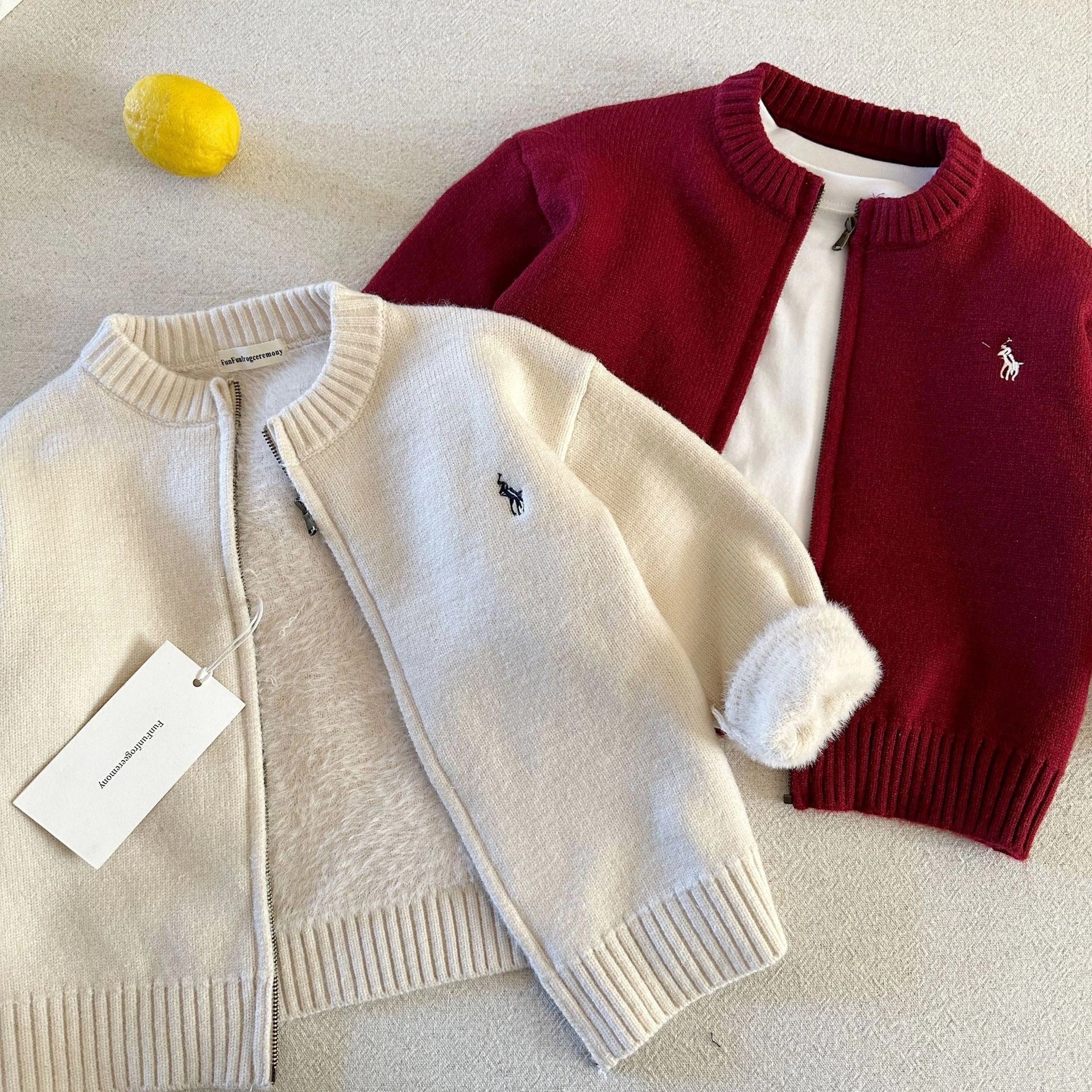 【洋气❗️加绒针织开衫】小布熊刺绣儿童加绒毛衣 2025冬男童潮牌针织开衫 宝宝小童加厚保暖外套