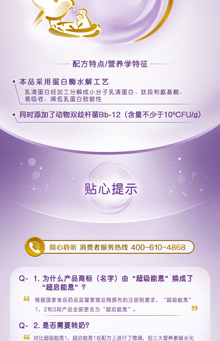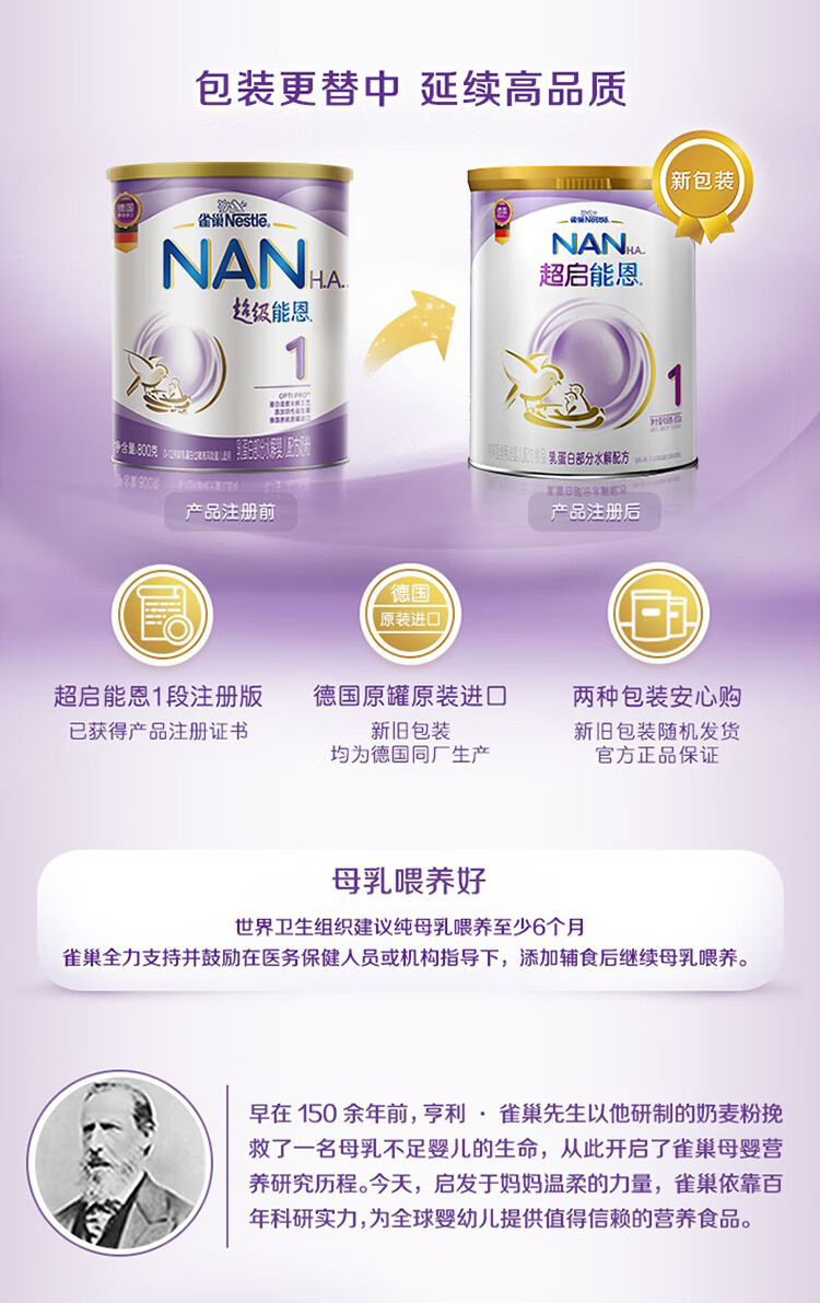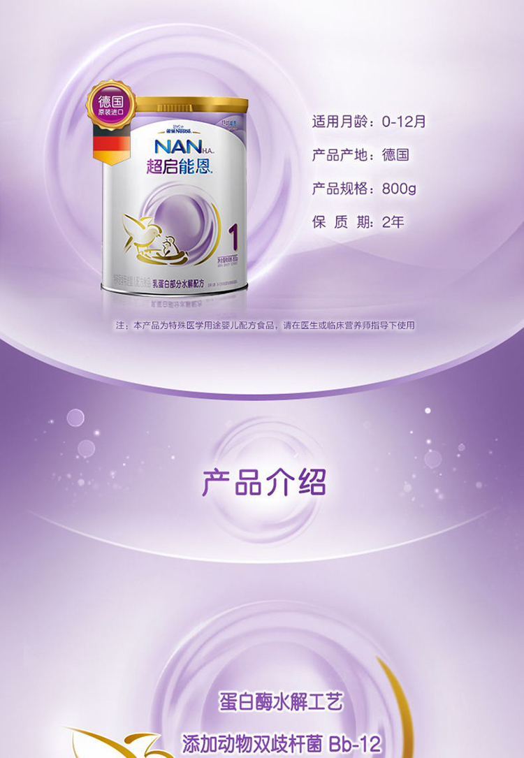 雀巢(nestle)超启能恩 婴幼儿乳蛋白部分水解配方奶粉1段0-12个月适用800g/罐