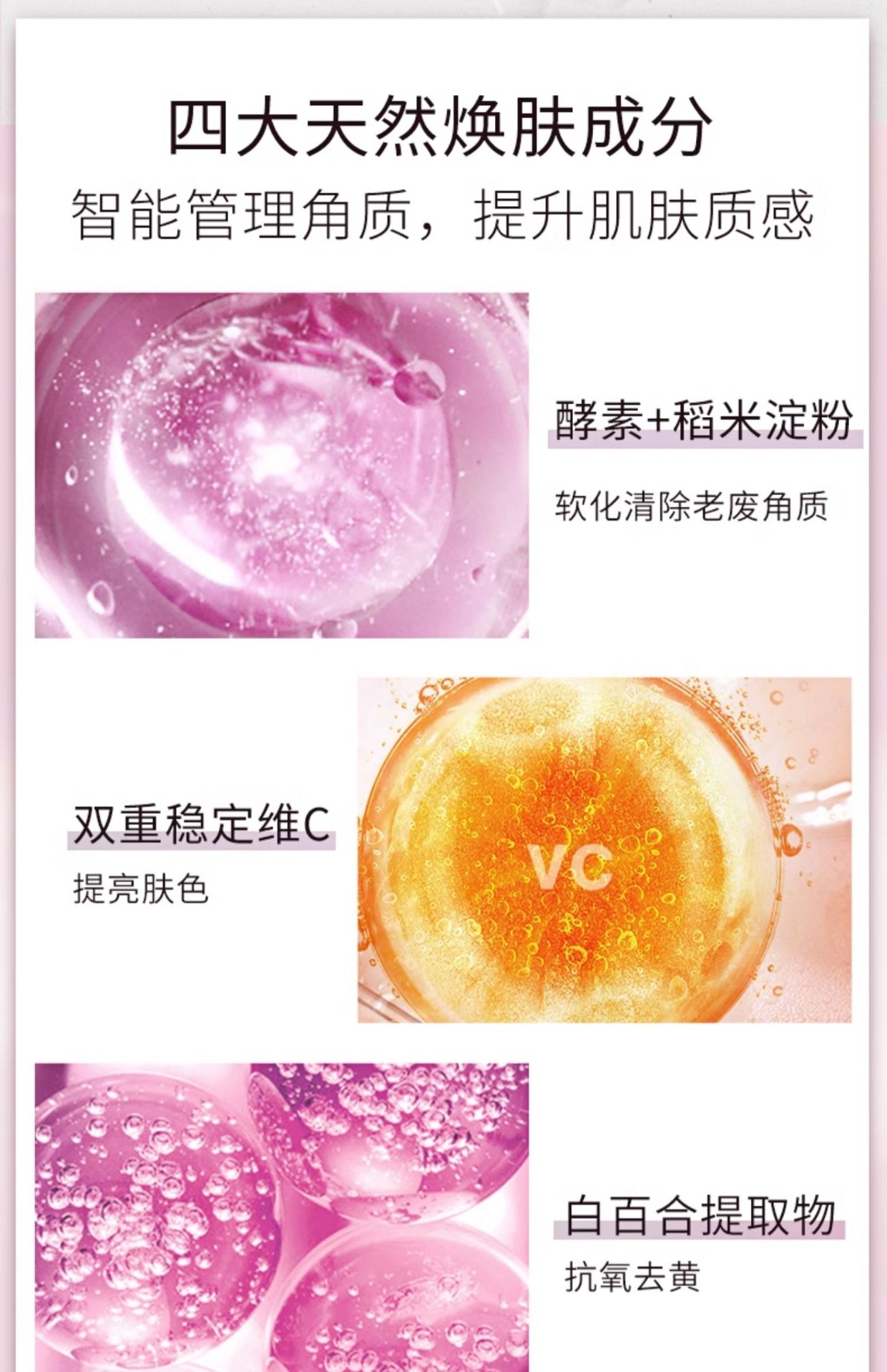 ☑️酵素+稻米淀粉:软化清除老废角质