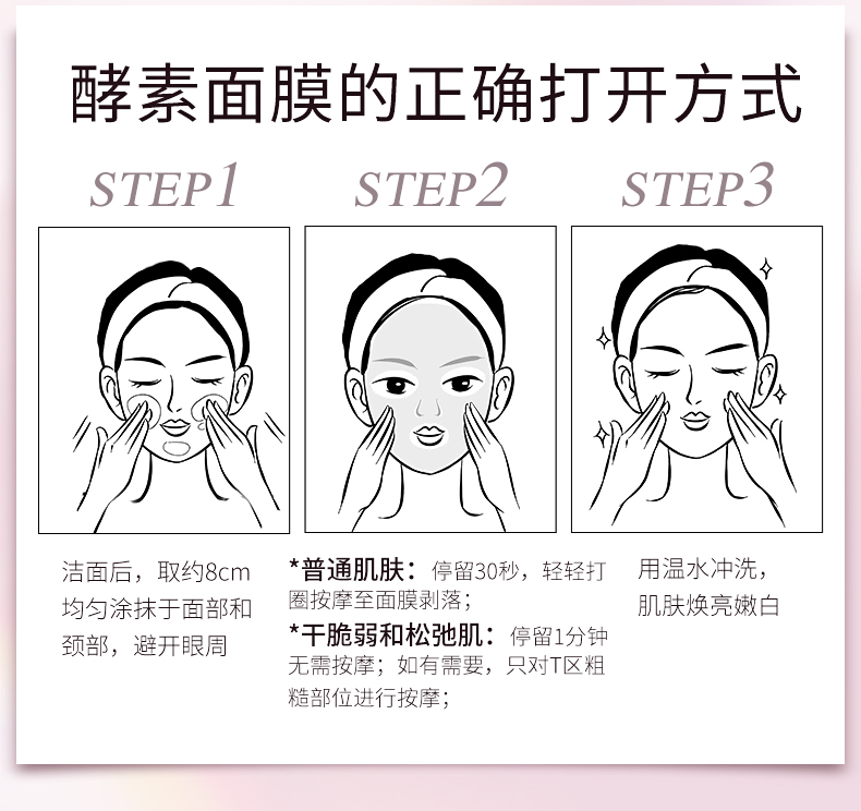 使用方法超简单:一般肌肤停留30秒,松弛肌肤停留一分钟,洗净即可!