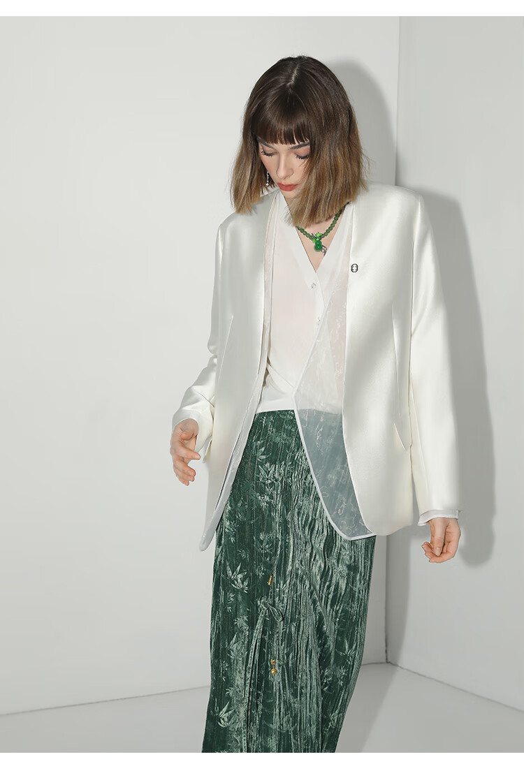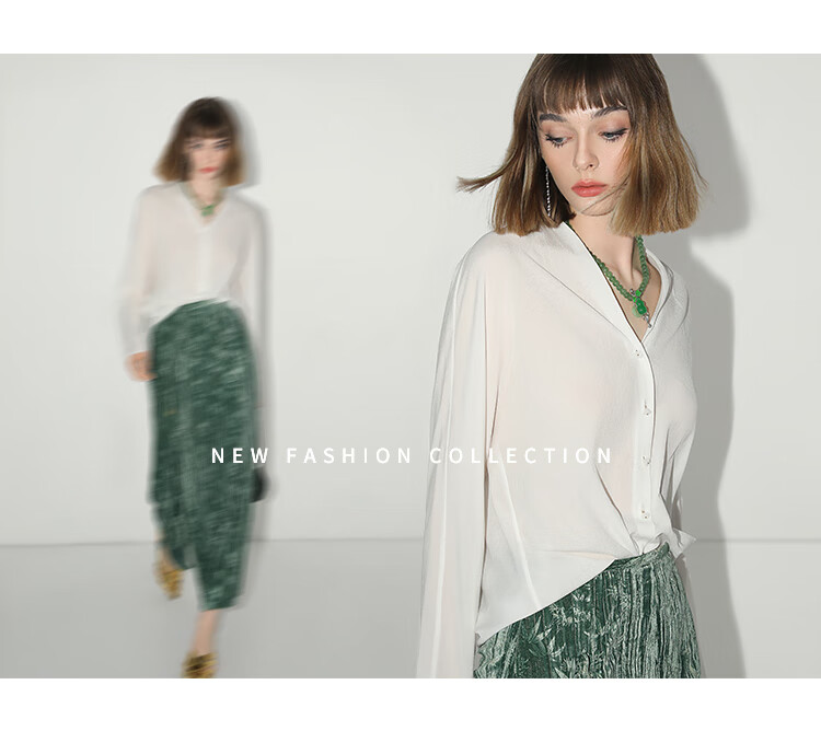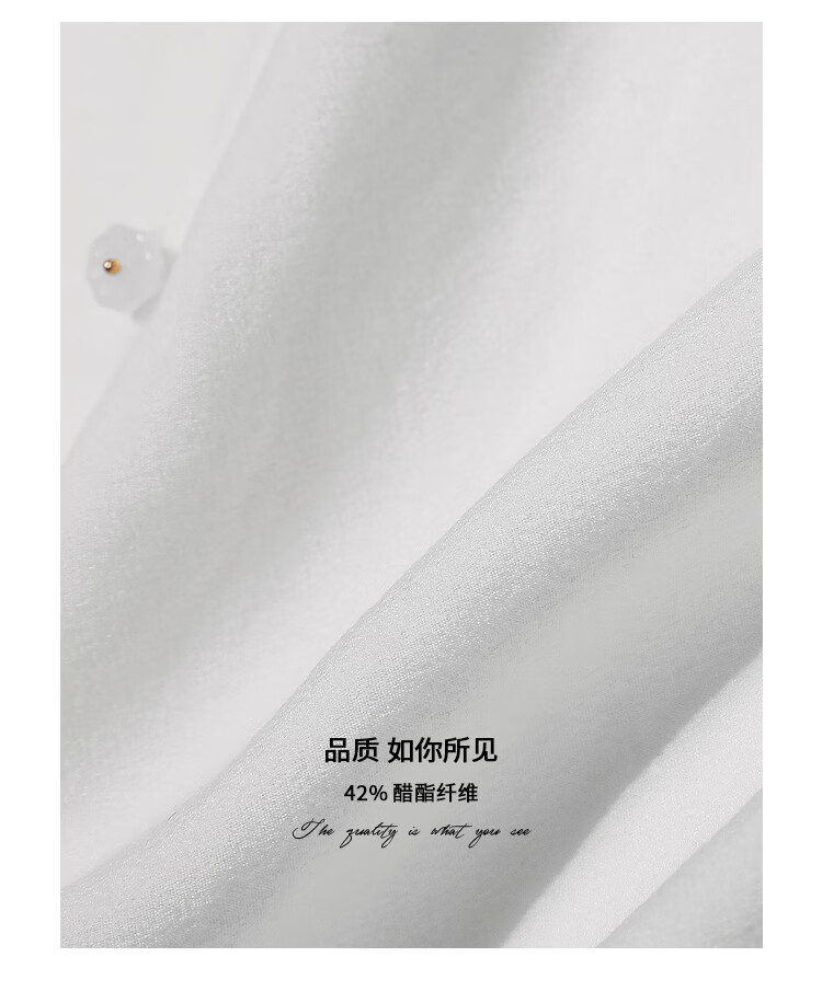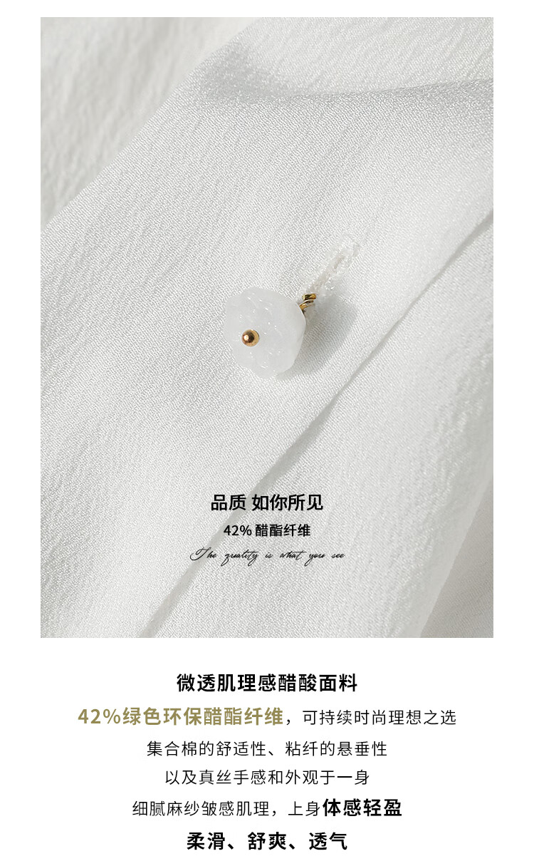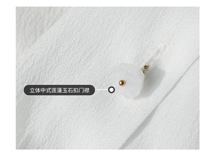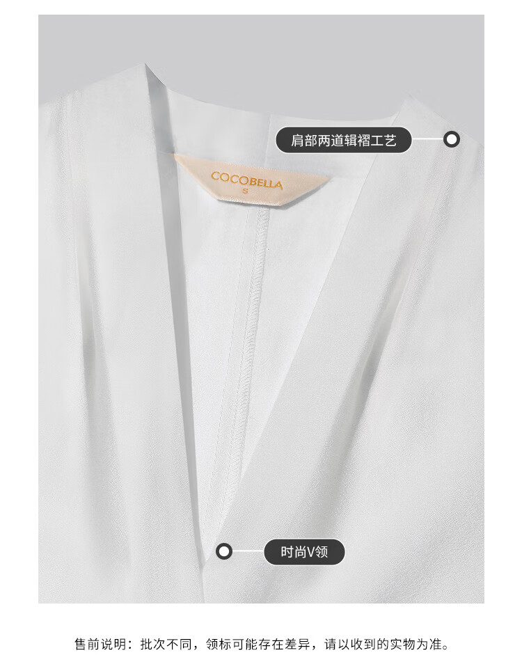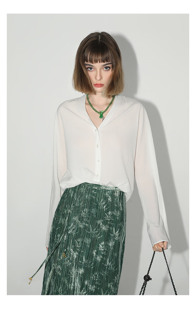 COCOBELLA轻奢醋酸纤维新中式V领白衬衫玉石扣质感衬衣SR0021