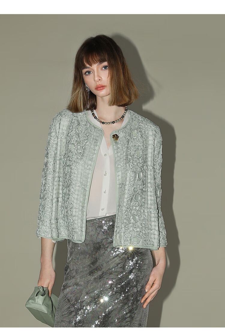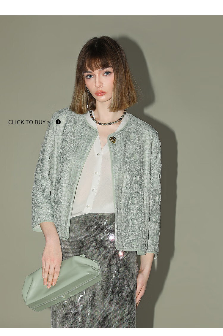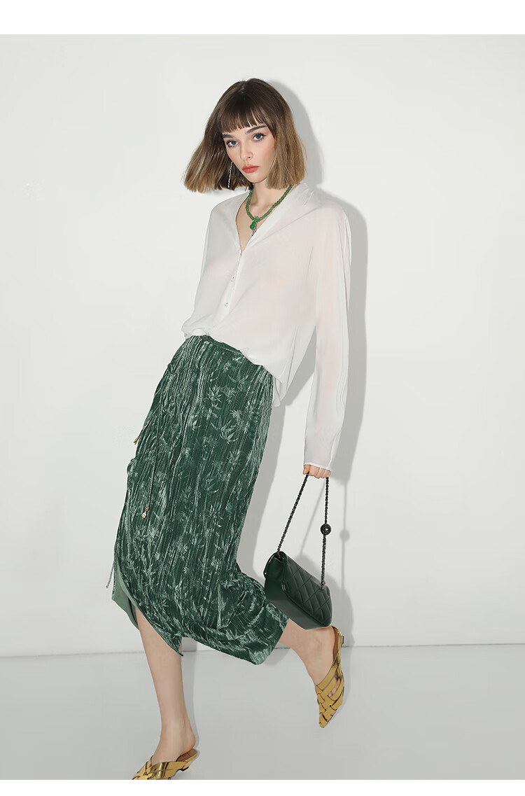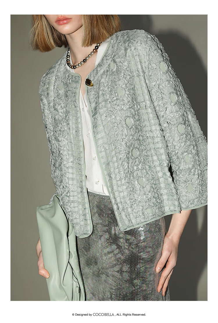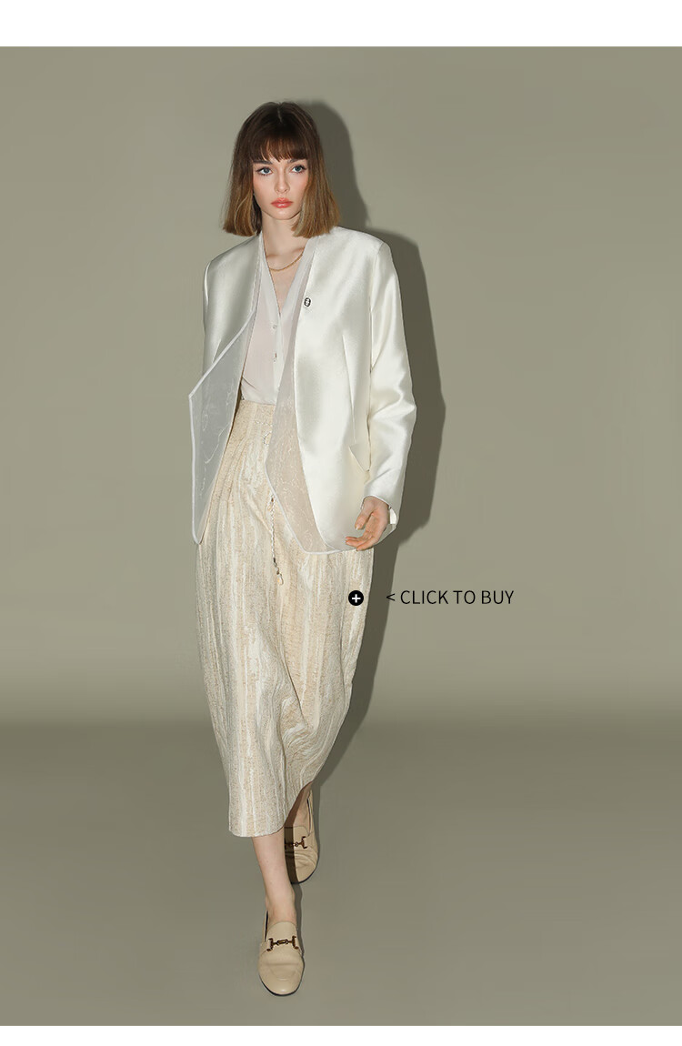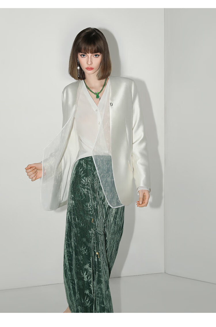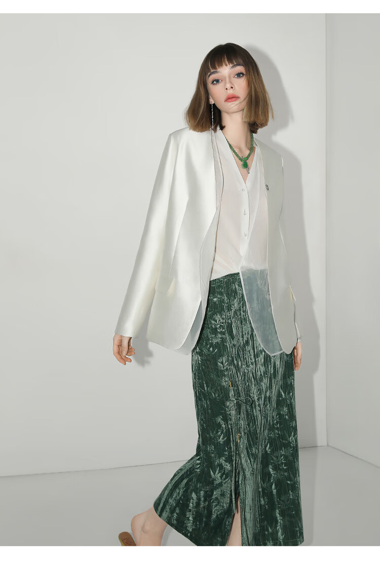 COCOBELLA轻奢醋酸纤维新中式V领白衬衫玉石扣质感衬衣SR0021
