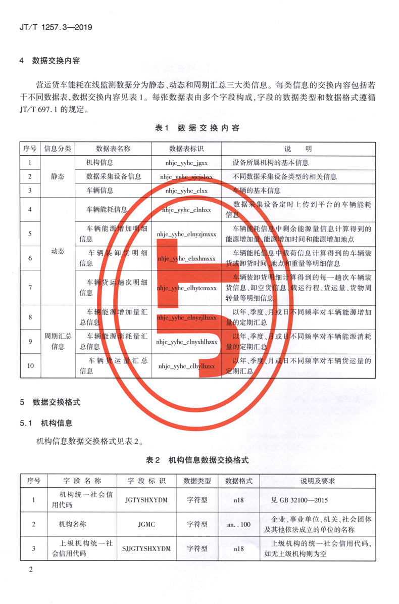 | 营运货车能耗在线监测 第3部分:数据交换(JT/T 1257.3—2019) | ||