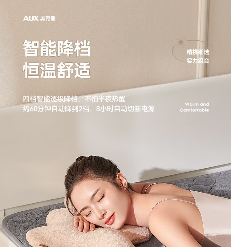 奥克斯石墨烯电热毯 单人双人调温双控电褥子 宿舍家用速热孕婴可用
