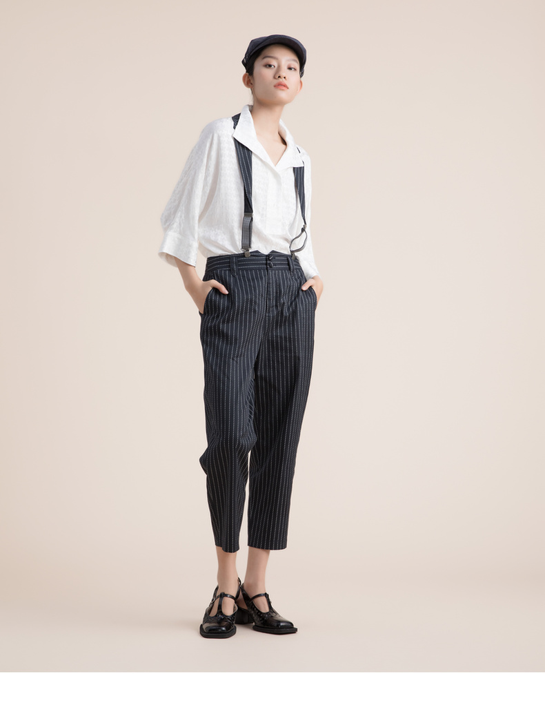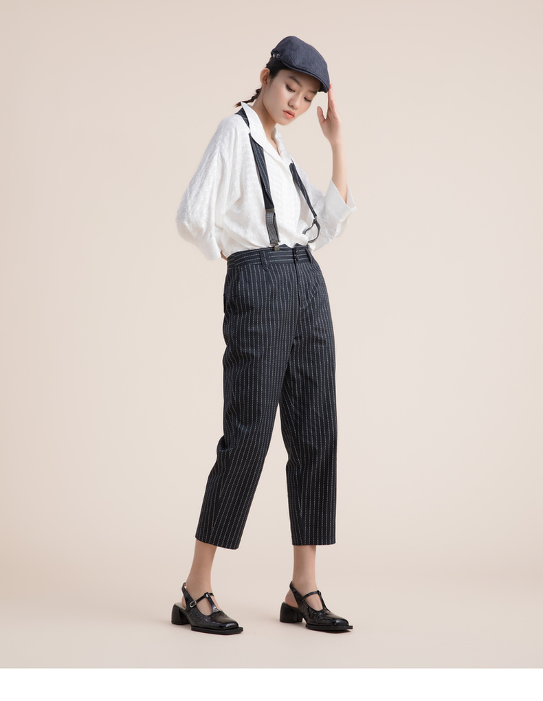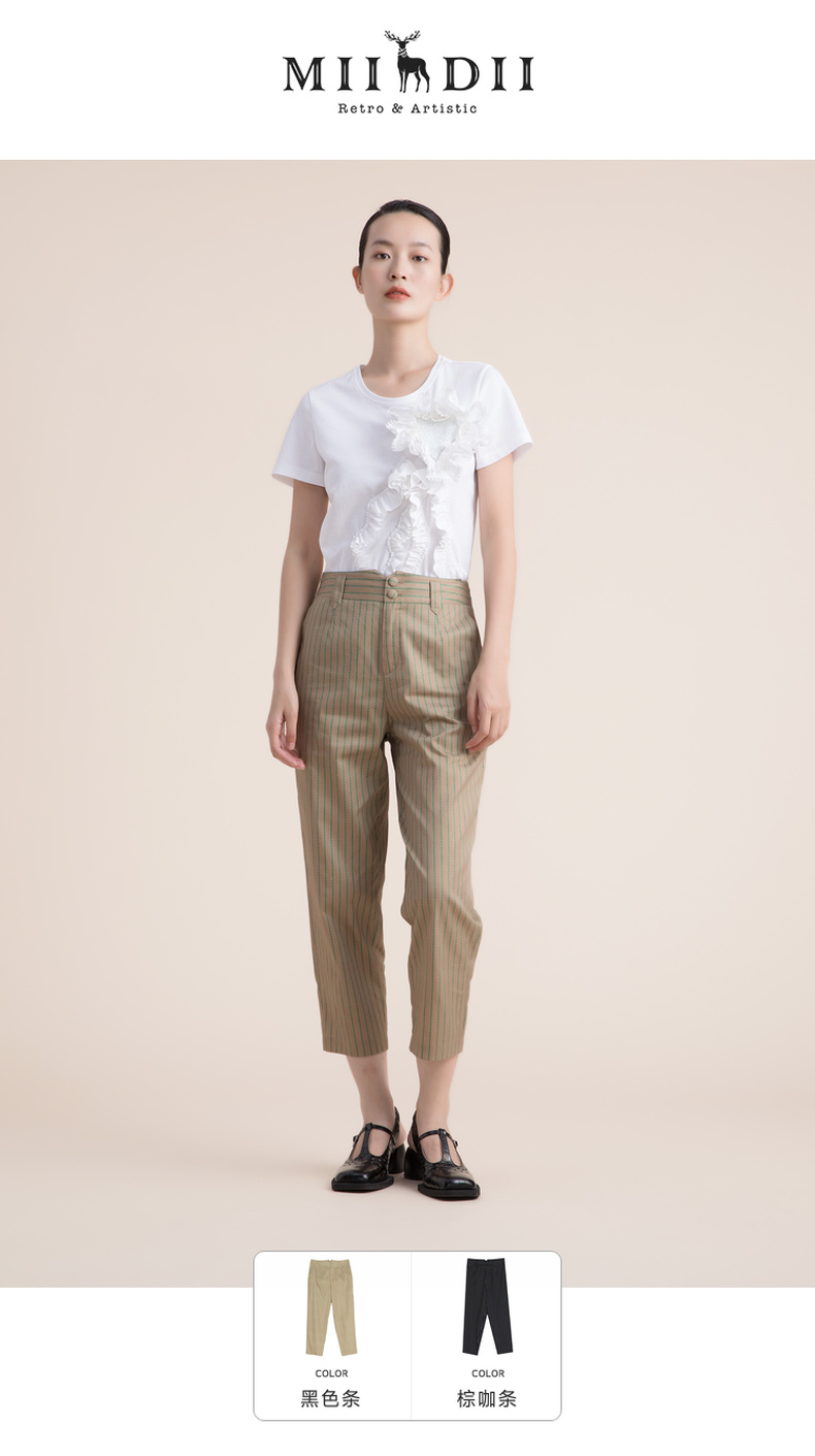 谜底九分裤女2022夏季新款复古简约帅气萝卜裤222MK0706