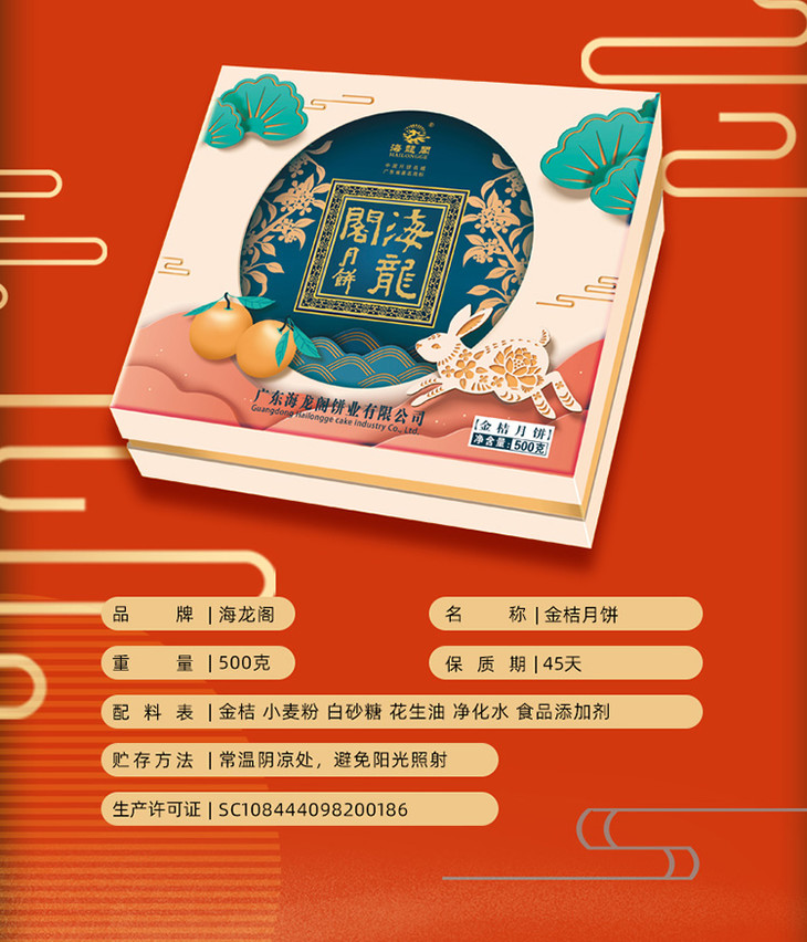 海龙阁 小金桔礼盒月饼礼盒 金桔水果月饼125g*4个