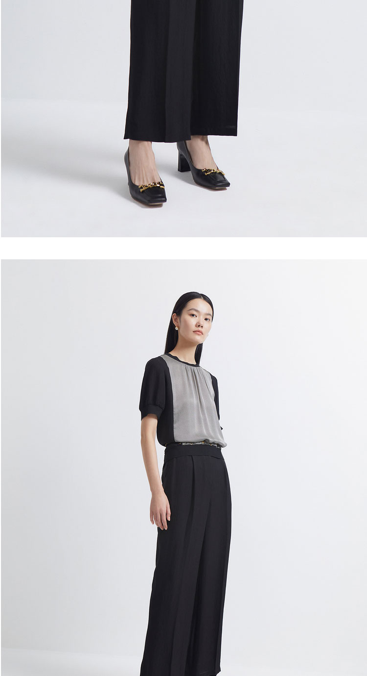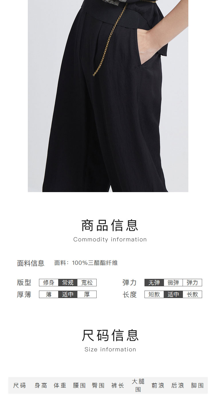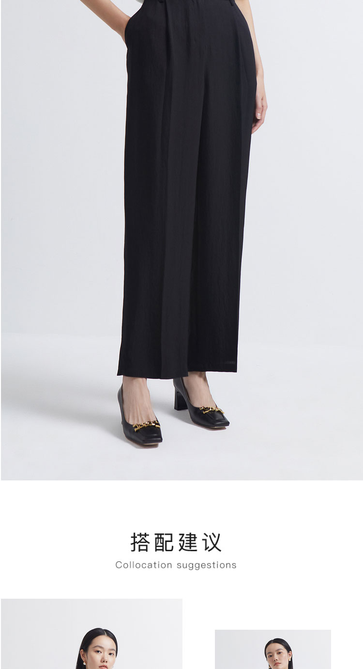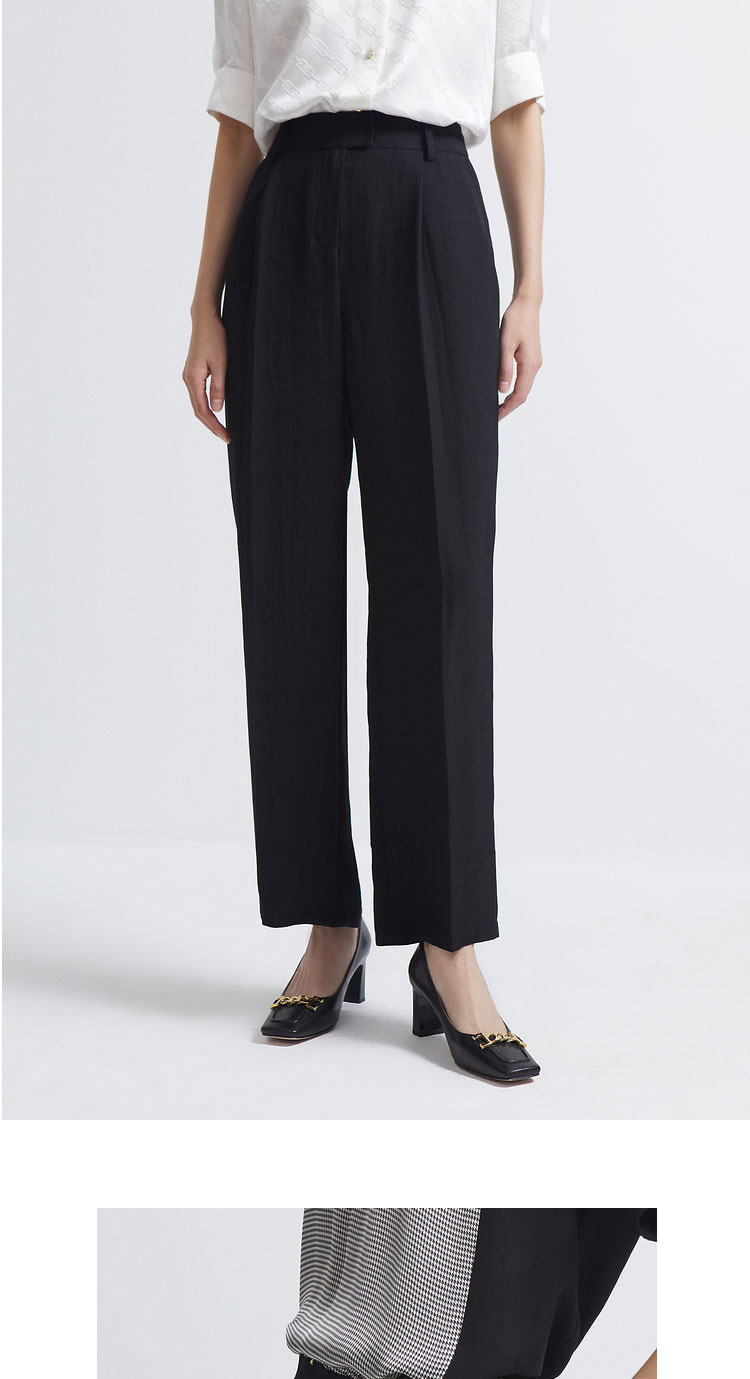 INSUN恩裳2022夏新品时尚自然褶皱感经典黑色三醋酸直筒休闲裤9C32220160