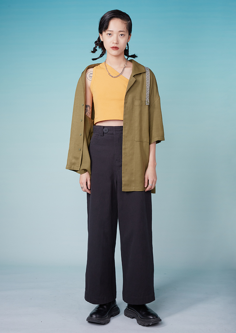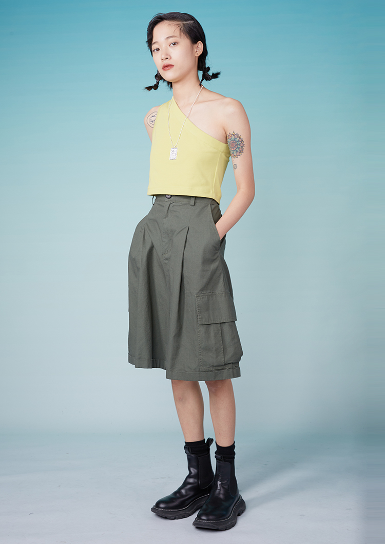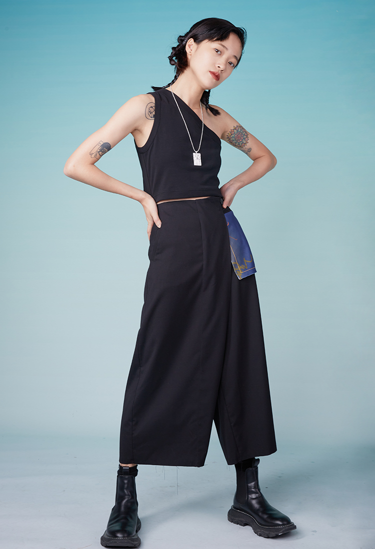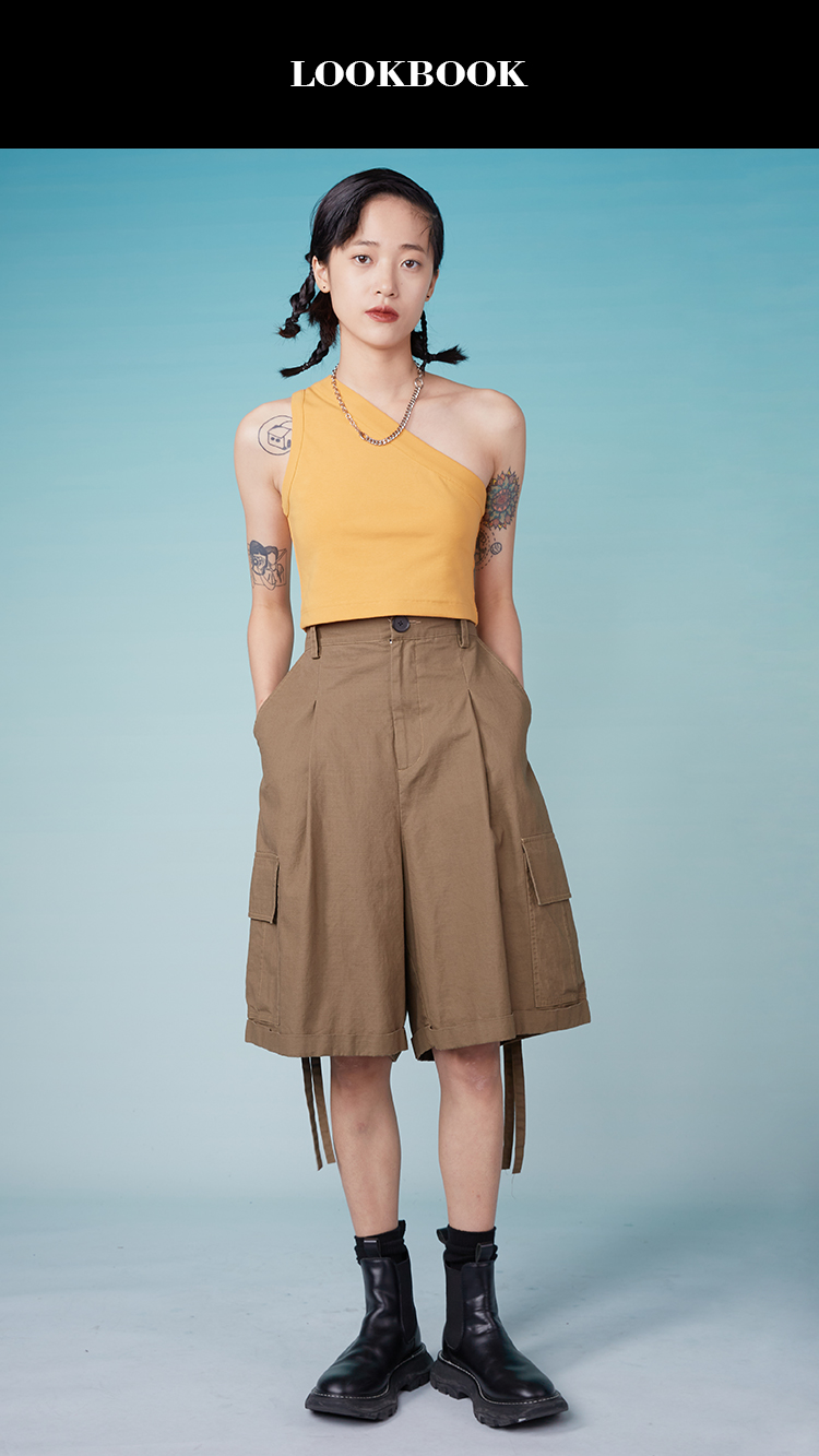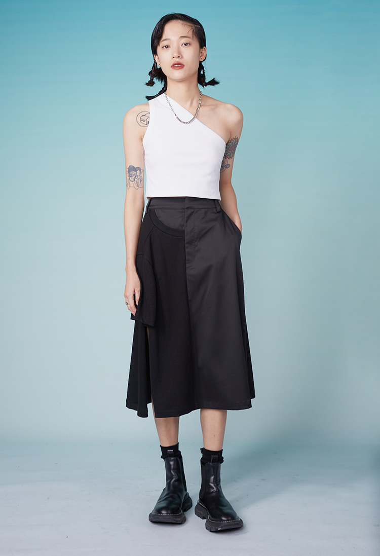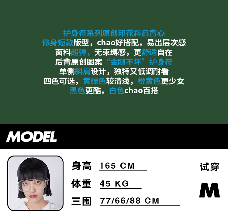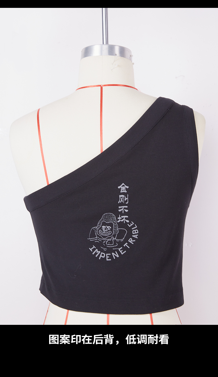 HOLONOMIC「金刚不坏」原创印花斜肩短款修身背心
