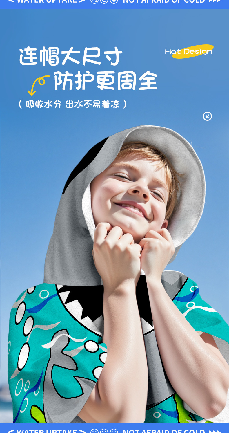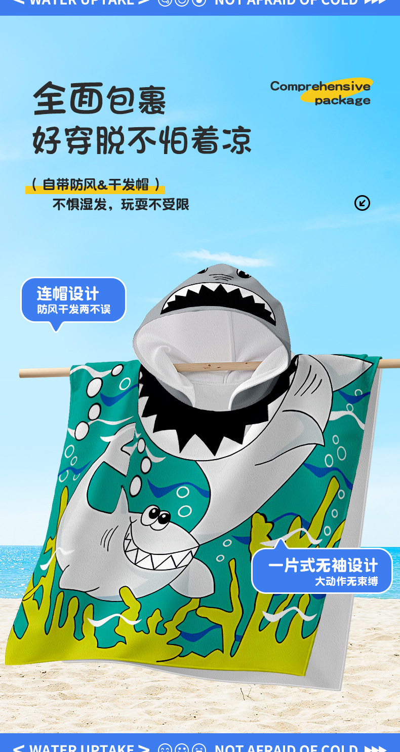 儿童浴巾宝宝洗澡吸水斗篷浴袍卡通活性印花超细纤维浴袍连帽披风 商品图6