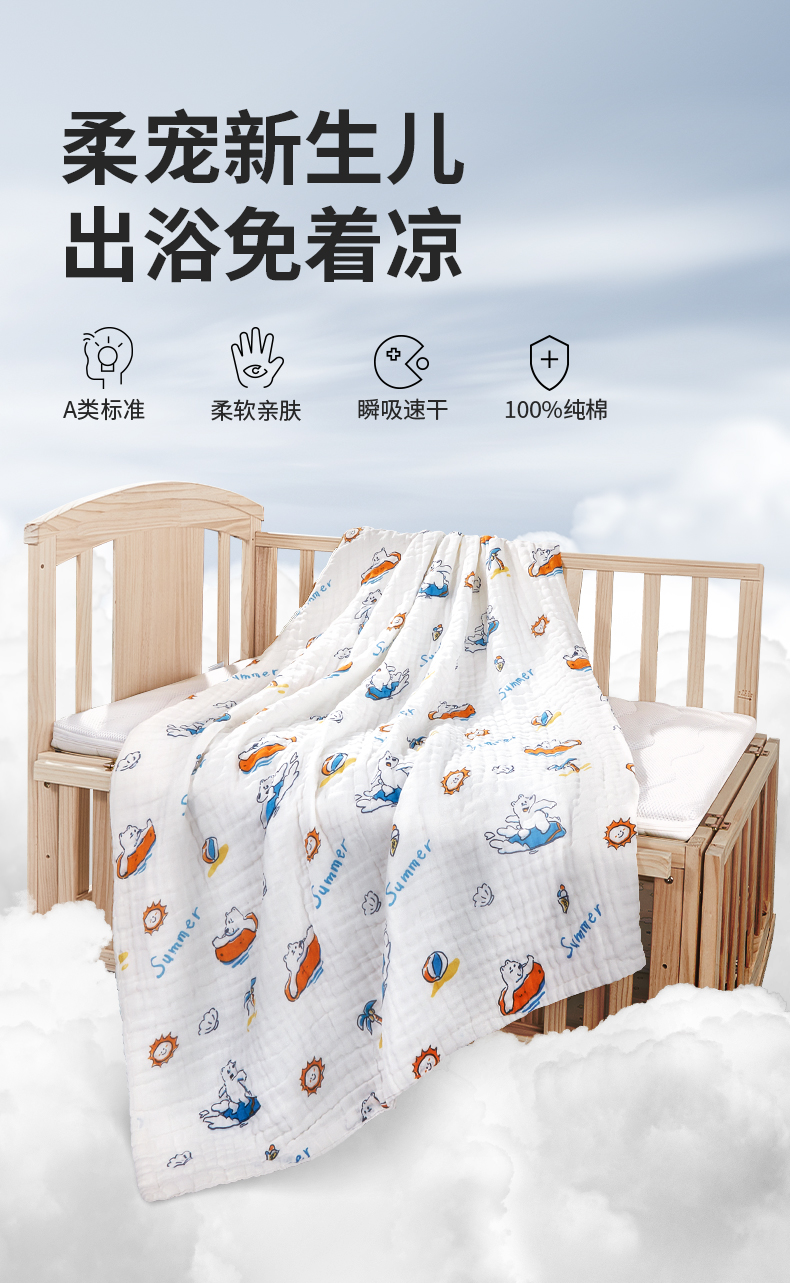 婴儿浴巾新生纯棉纱布宝宝儿童专用初生男女孩浴袍超软吸水秋冬季