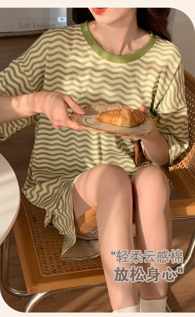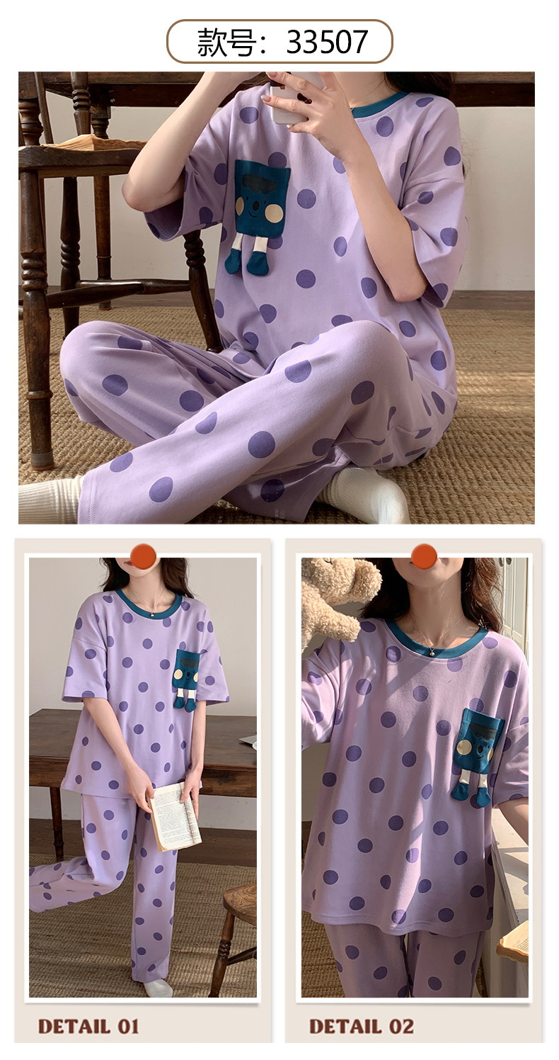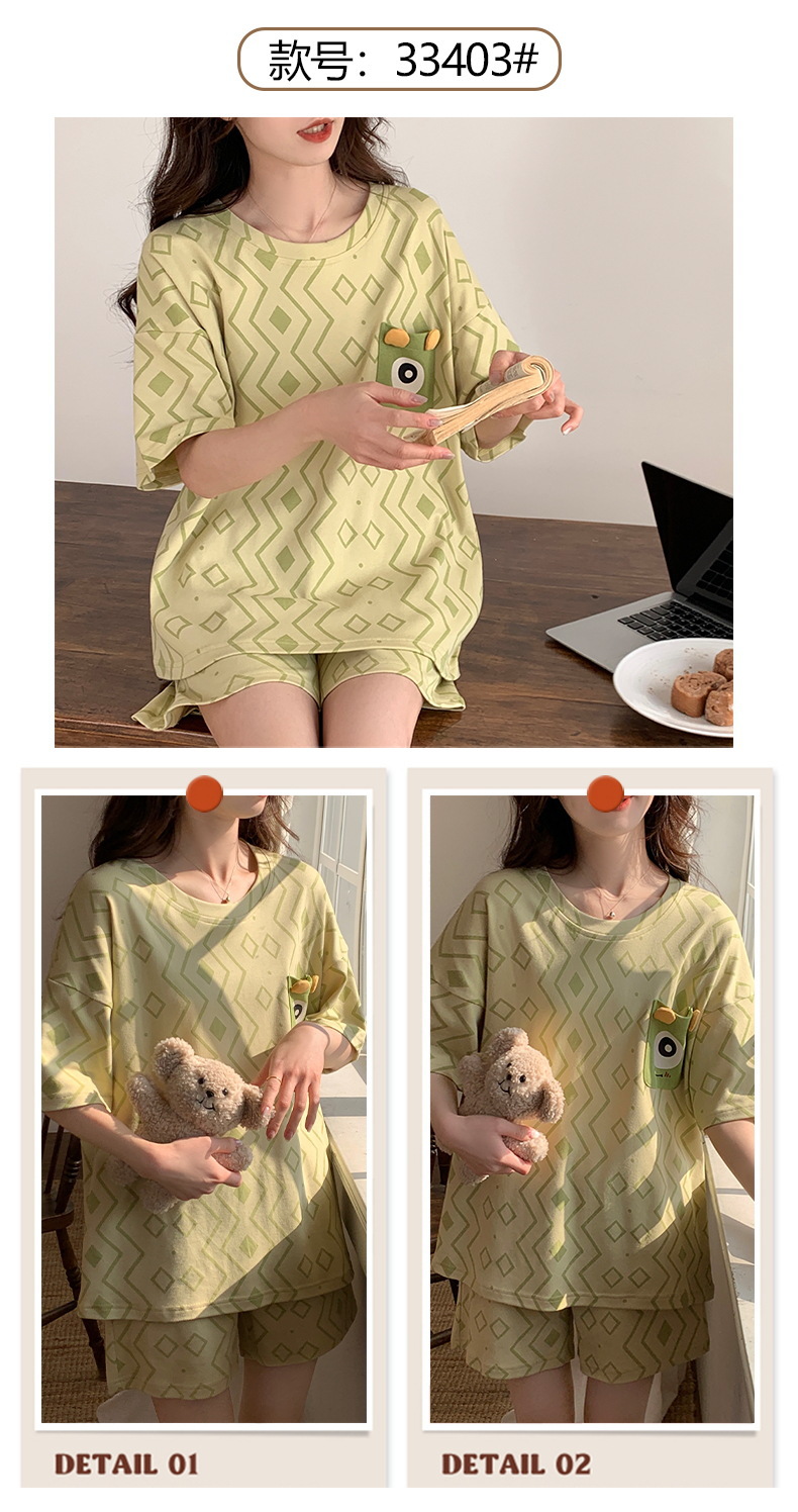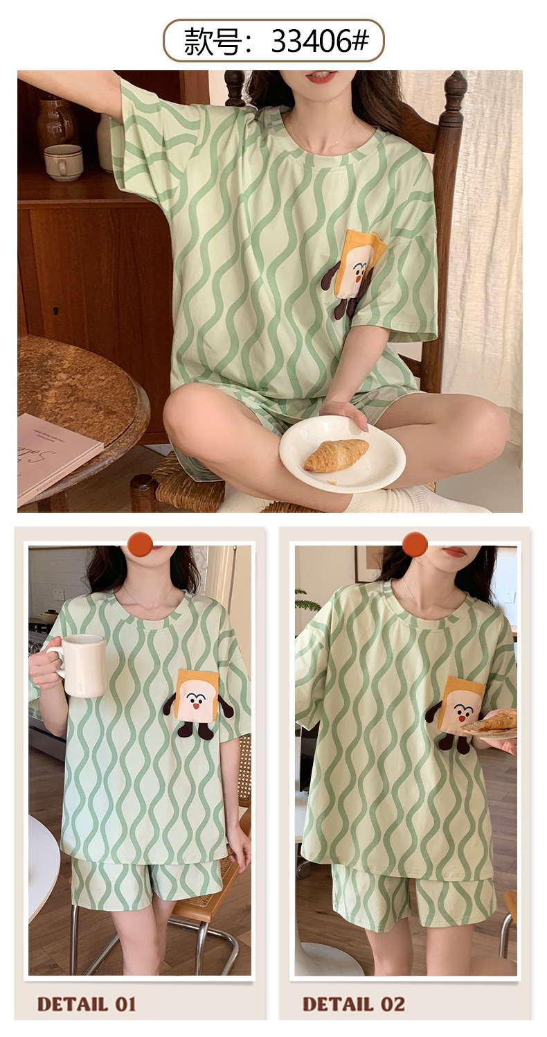 短袖睡衣女夏季棉质薄款卡通少女学生圆领夏天可外穿家居服