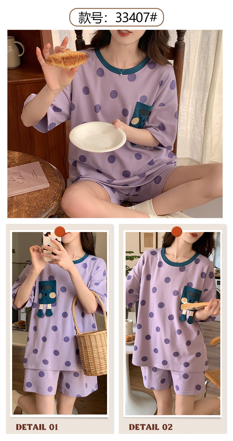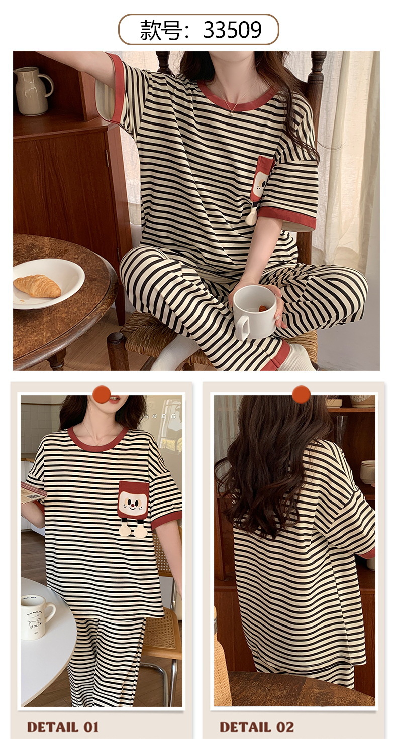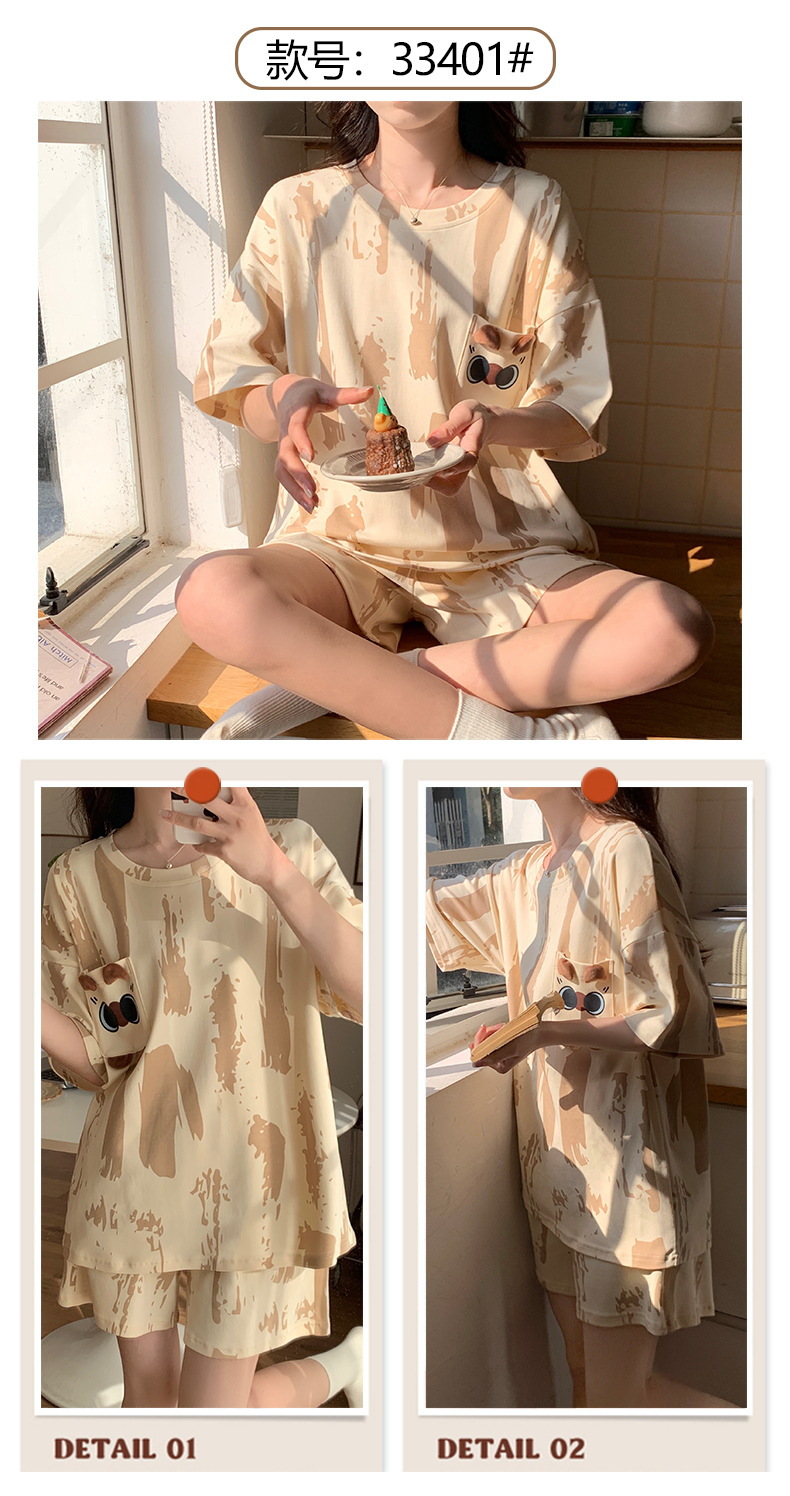 短袖睡衣女夏季棉质薄款卡通少女学生圆领夏天可外穿家居服