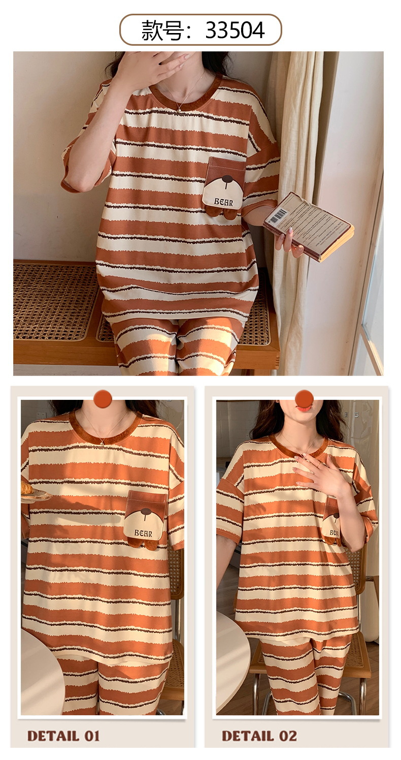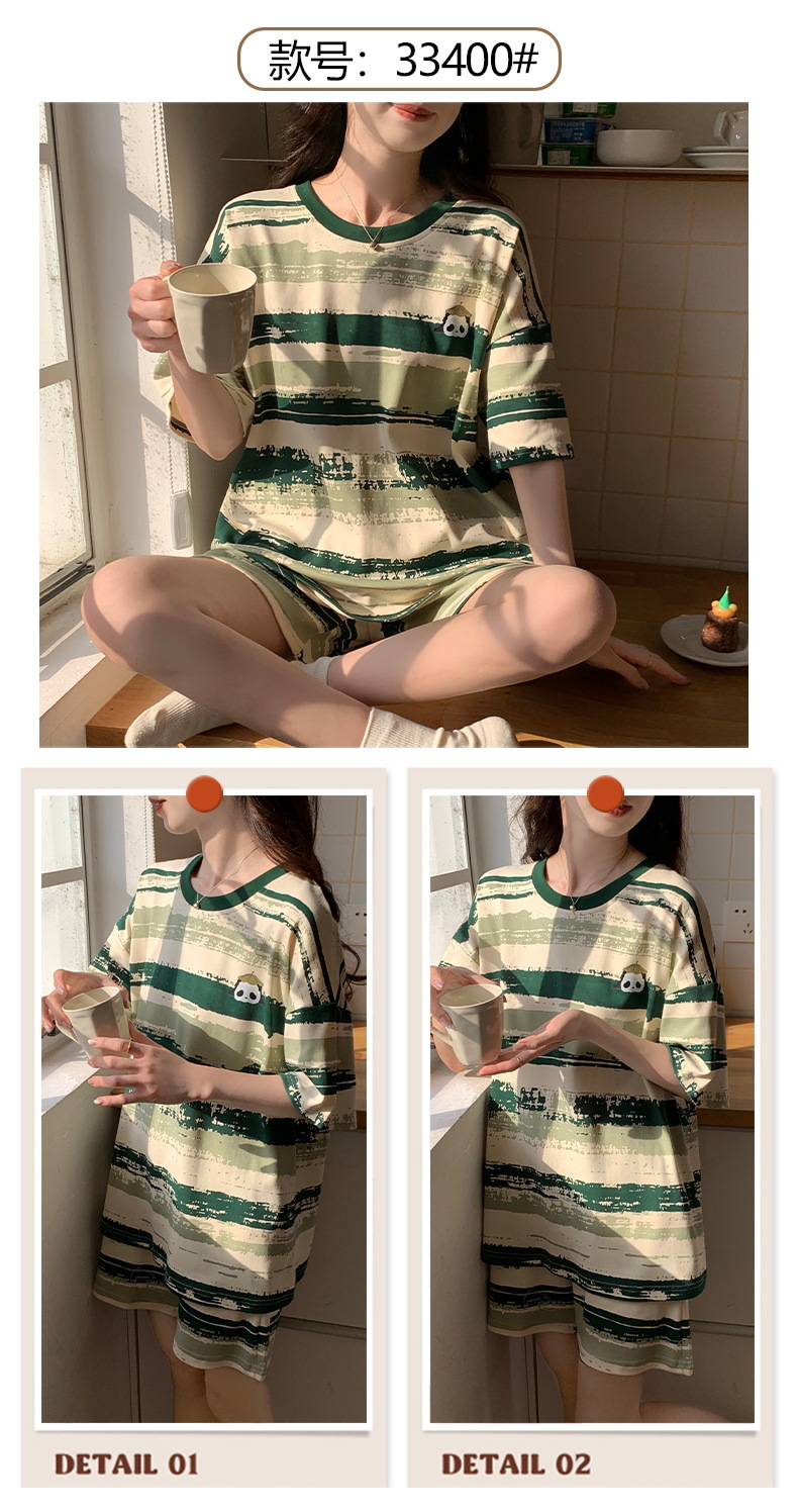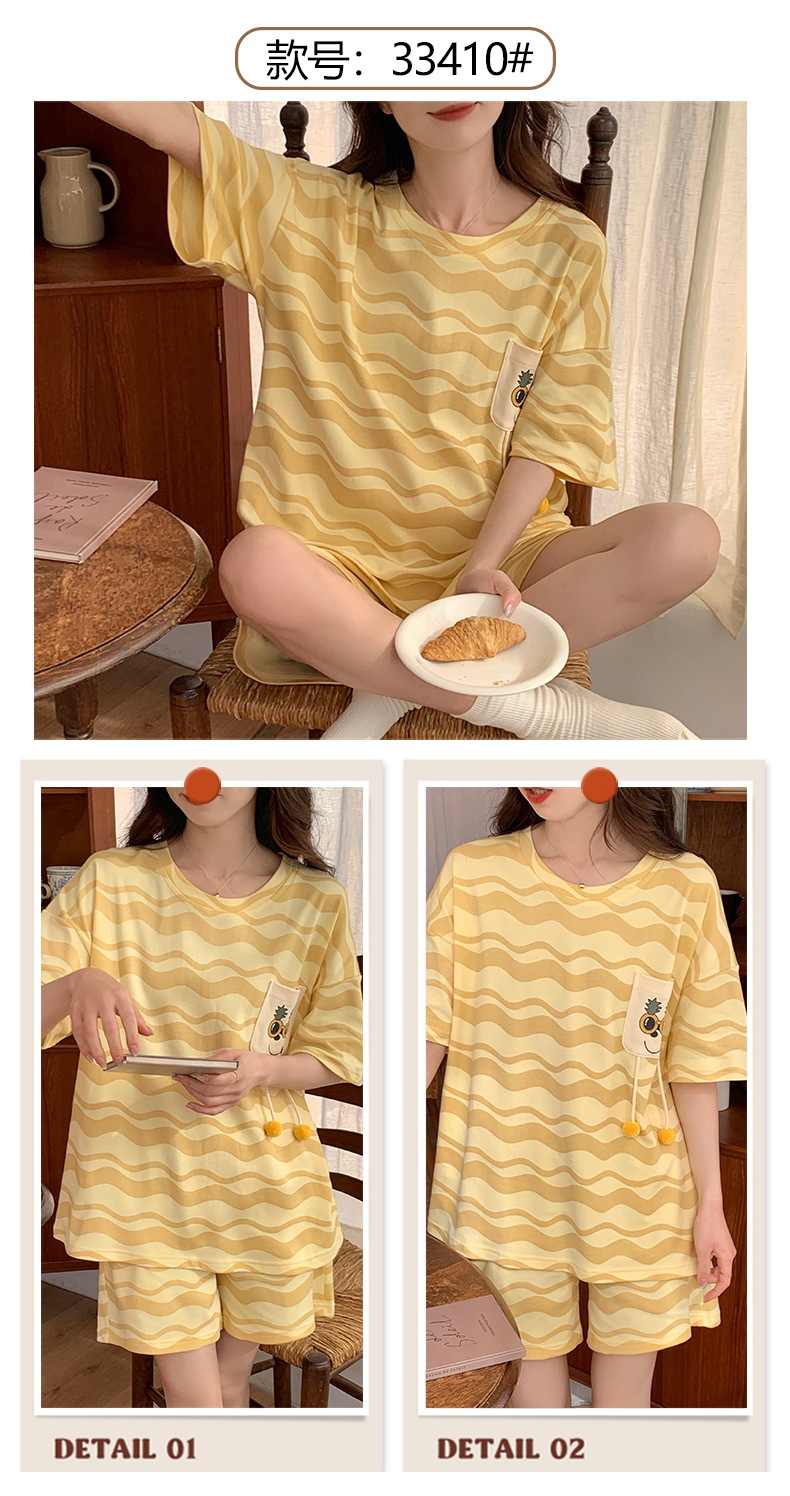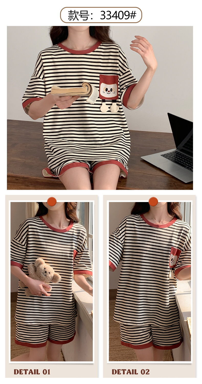 短袖睡衣女夏季棉质薄款卡通少女学生圆领夏天可外穿家居服