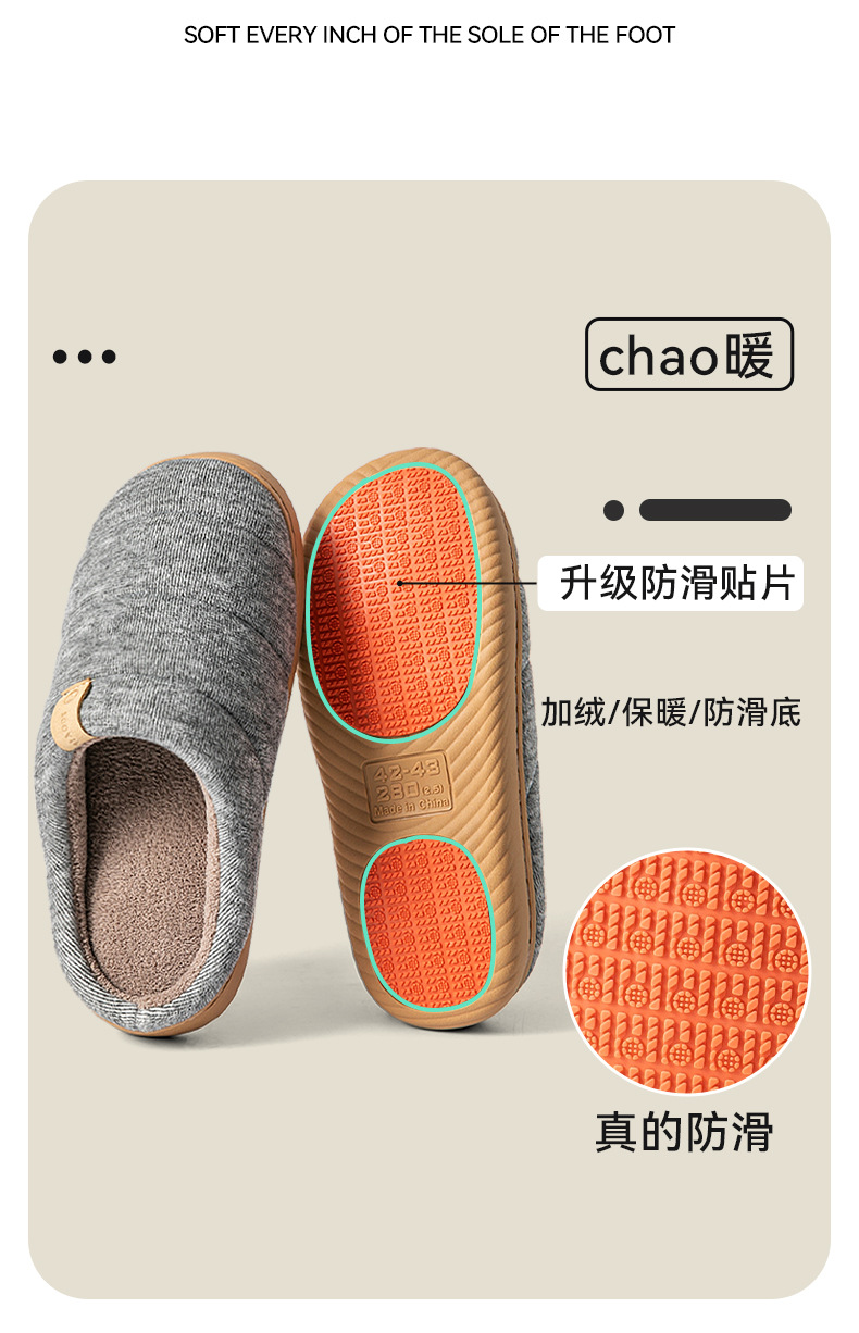 秋冬保暖棉拖鞋踩屎感棉拖鞋男士秋冬季室内家居静音保暖加绒防滑防臭毛拖鞋男式棉鞋