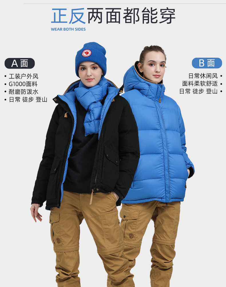 北极G-1000羽绒服女士白鹅绒可两面穿户外保暖09221230