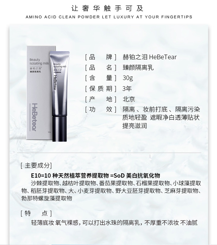 赫铂之泪/HeBetear 臻颜隔离乳30g[福利品]