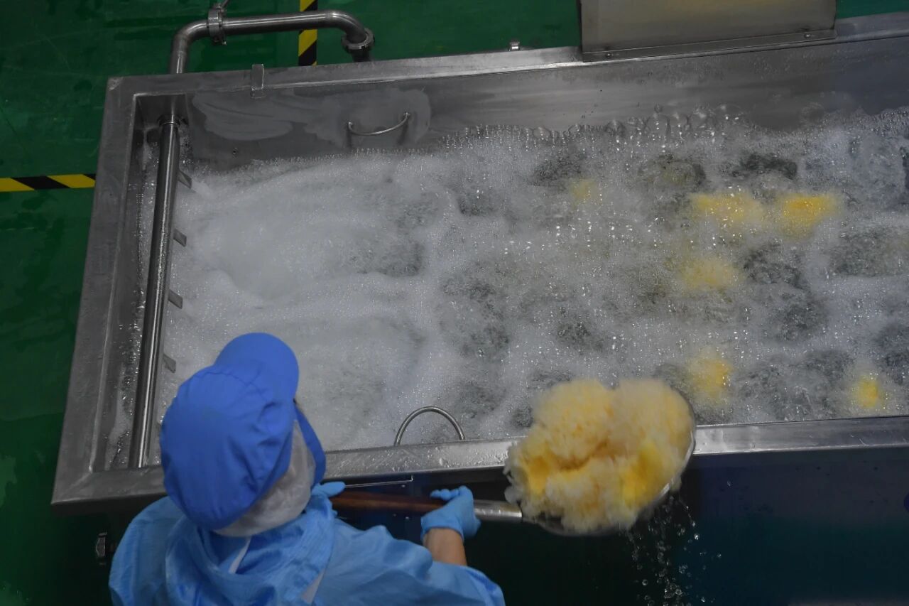 虽然车间是封闭的,但是生产线又是全透明的,从头到尾的每道工序、每个操作岗位,都可以在车间外面隔着透明玻璃看到。一朵新鲜银耳从进入车间开始流到包装出厂,始终都透明可见。