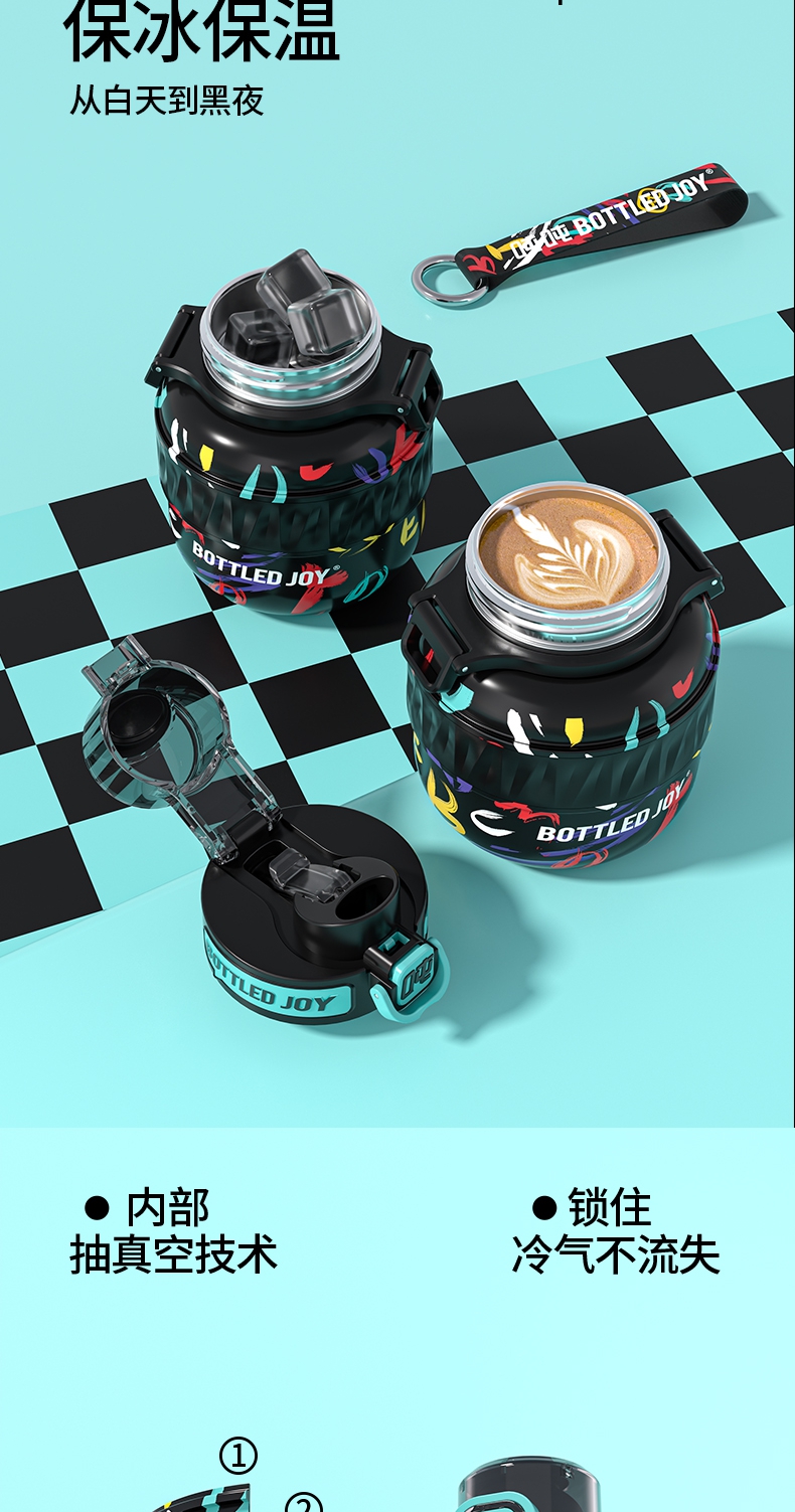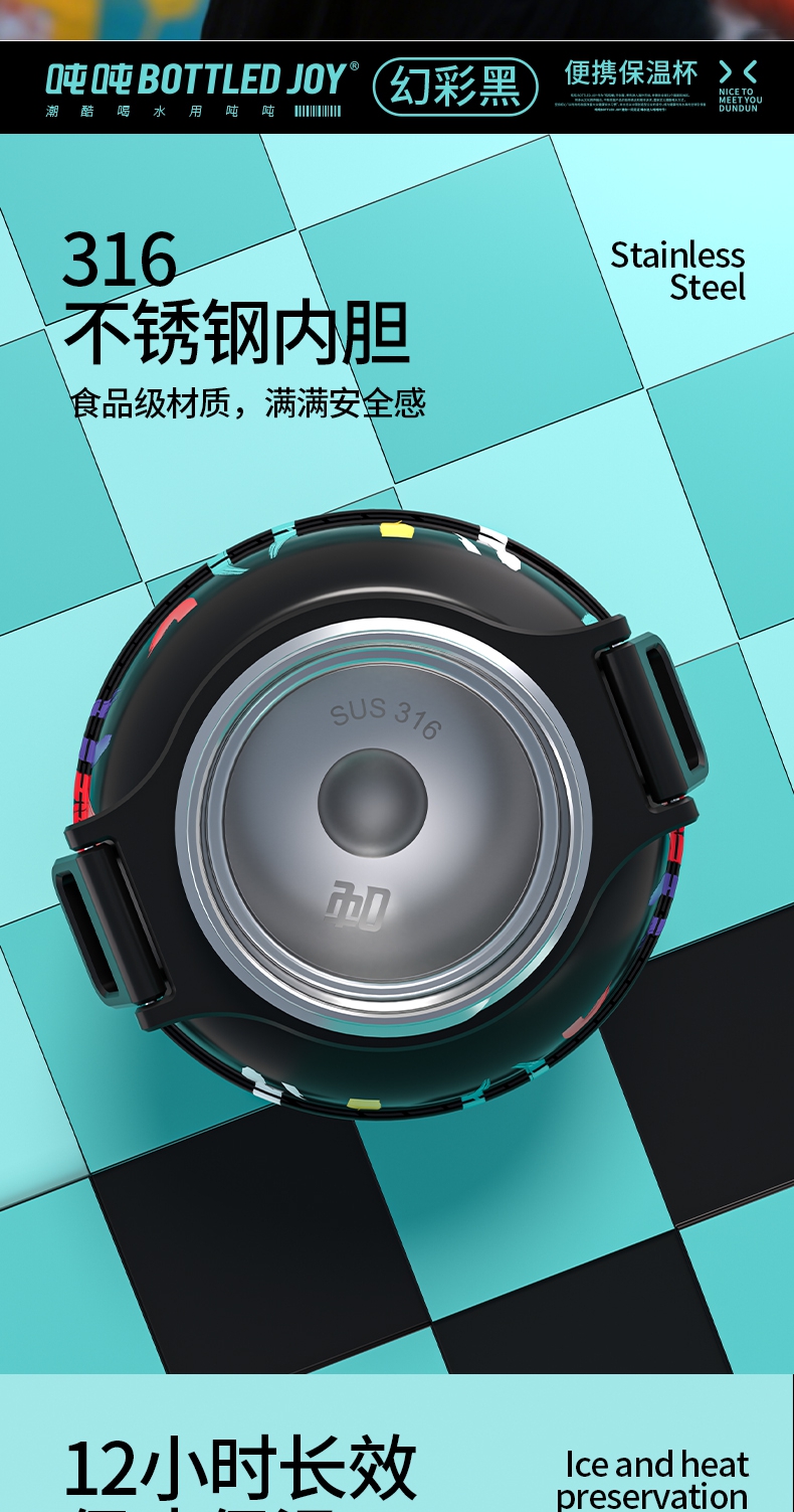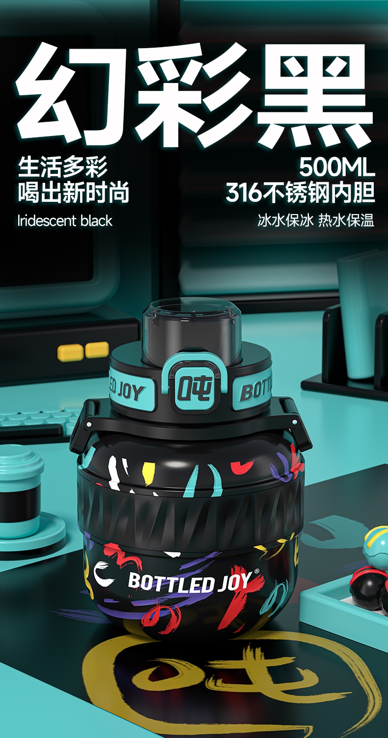 316不锈钢0.5L暖吨吨保温杯潮酷有背带便携