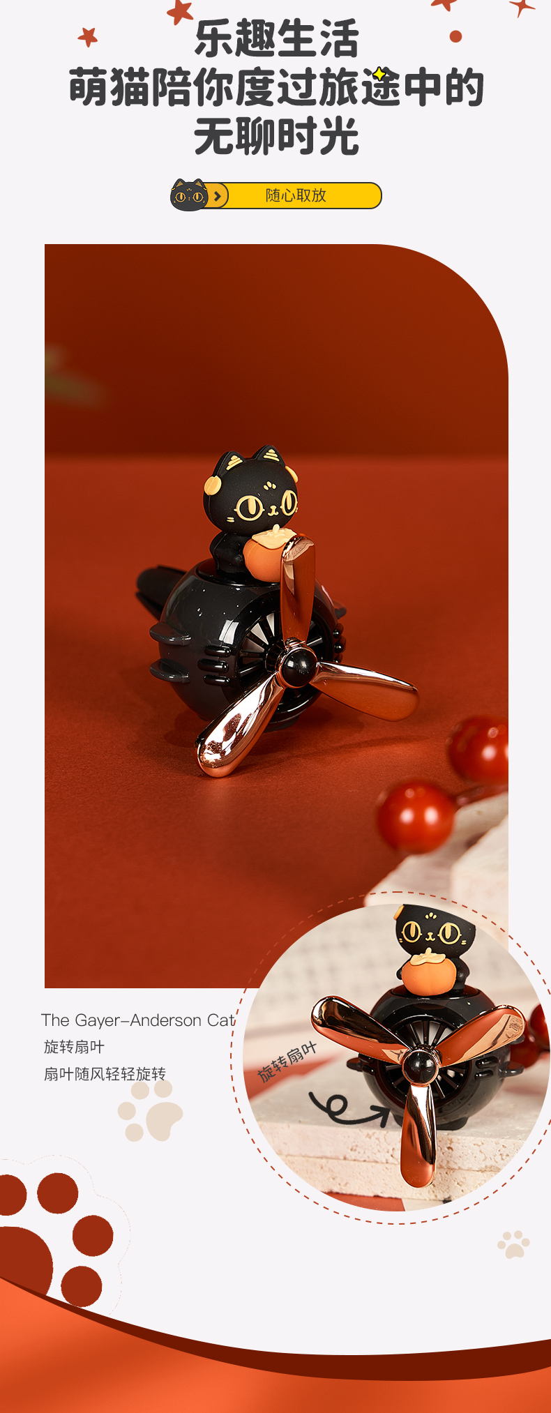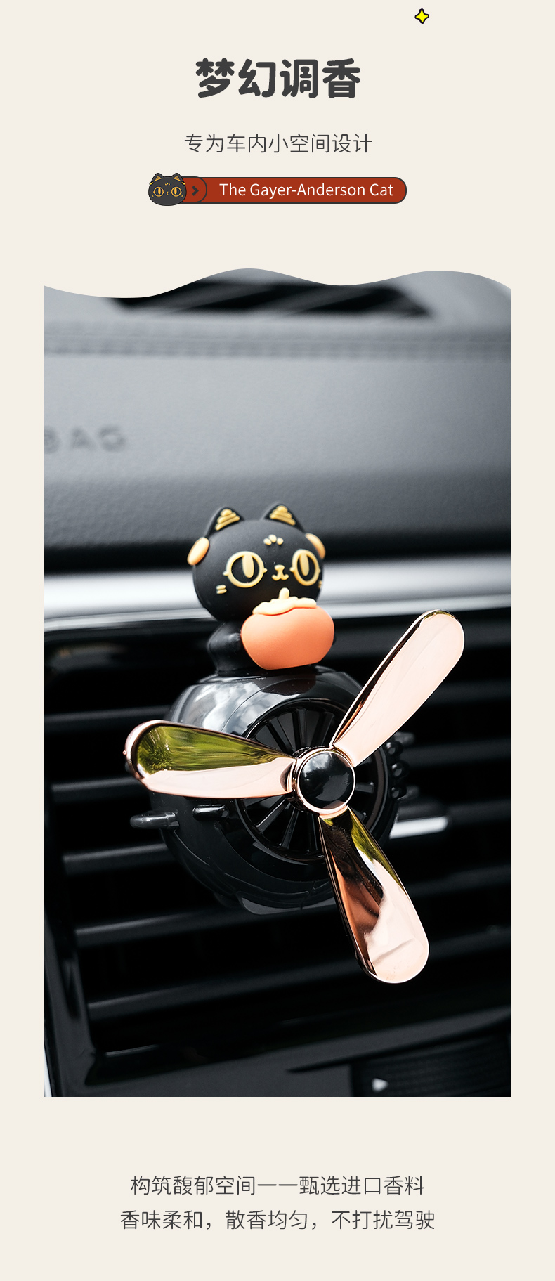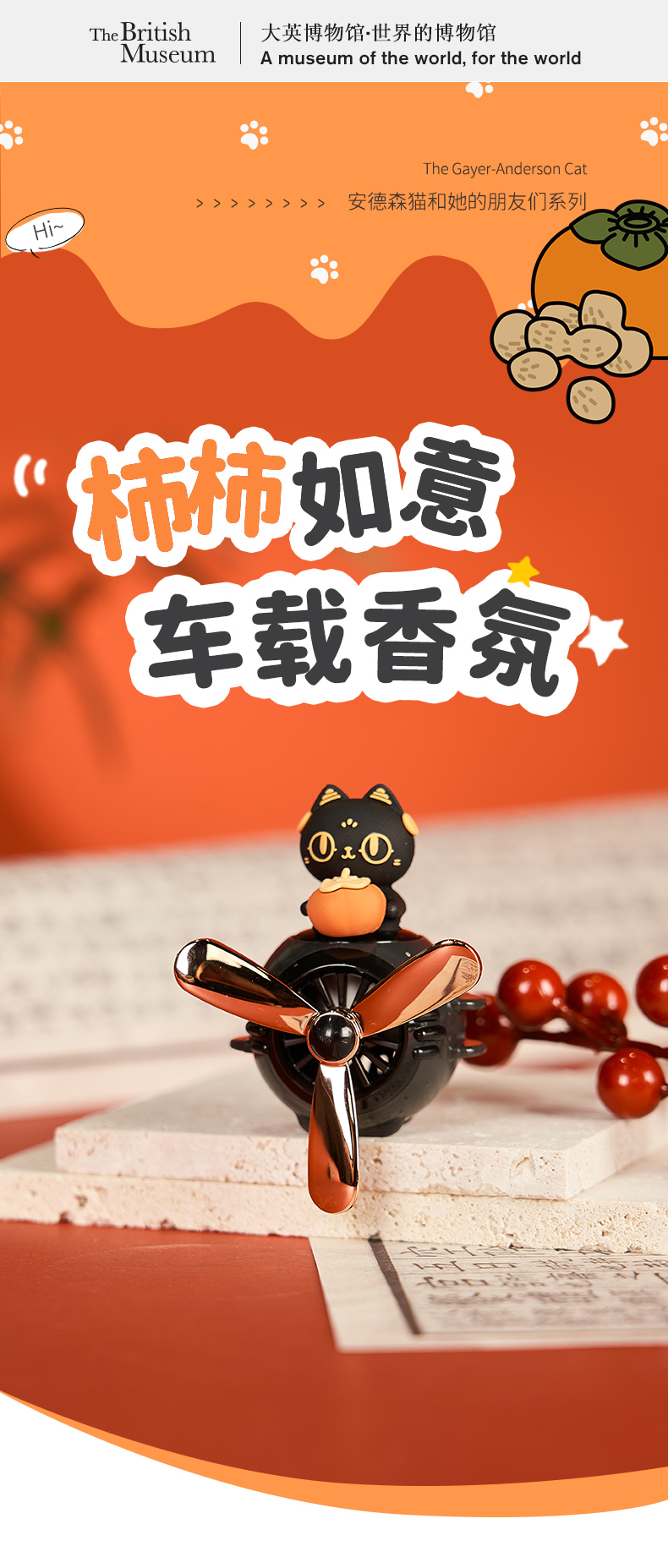 大英博物馆 盖亚·安德森猫和她的朋友们系列 旋转出风口 车载香氛 车插 柿柿如意