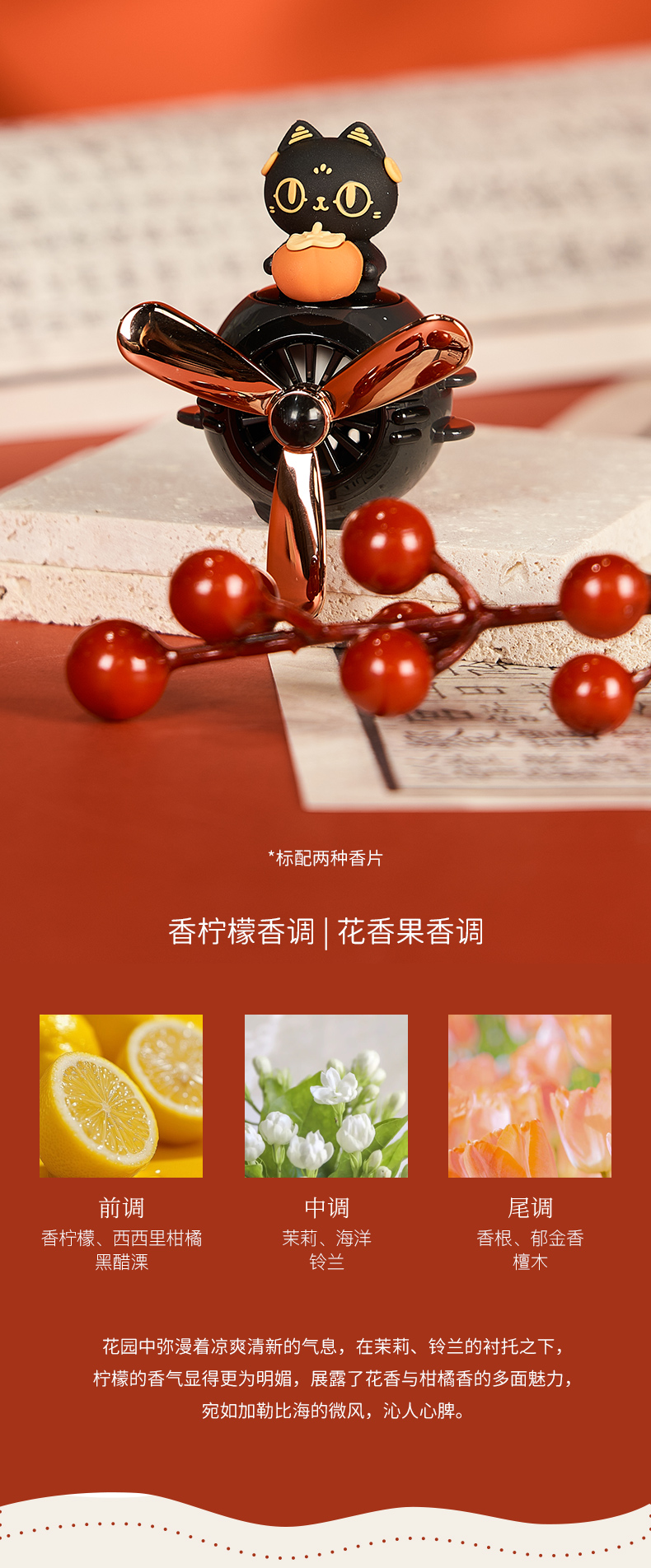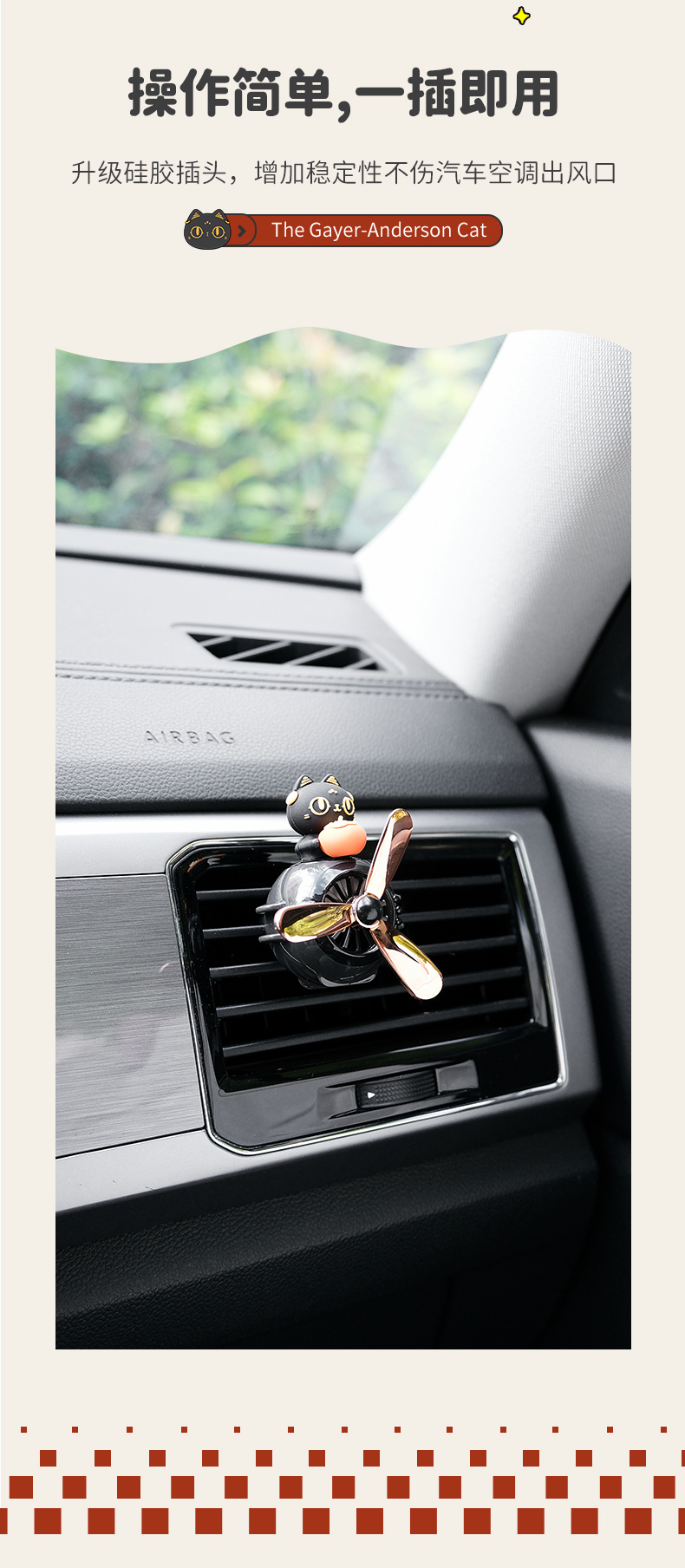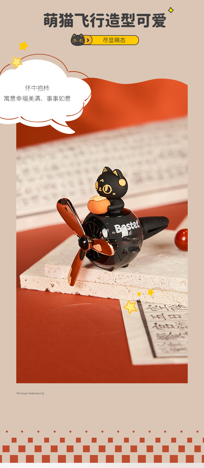 大英博物馆 盖亚·安德森猫和她的朋友们系列 旋转出风口 车载香氛 车插 柿柿如意