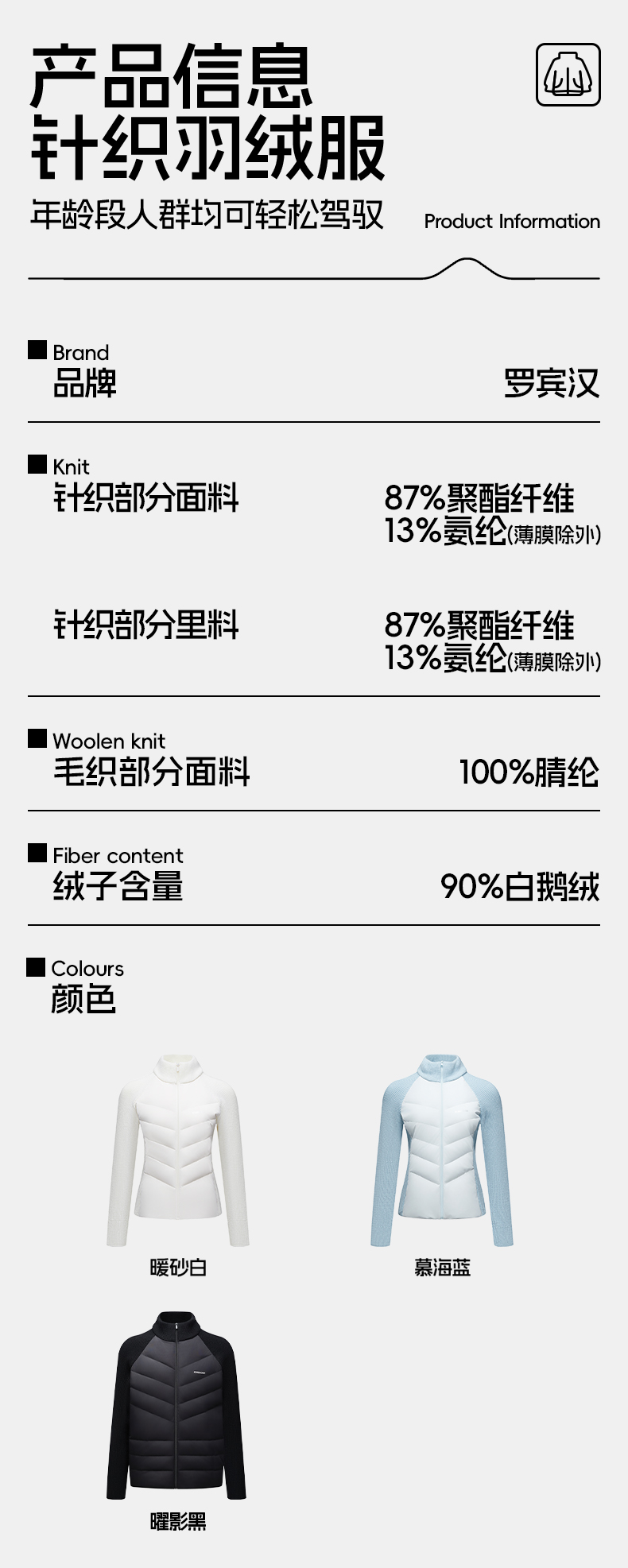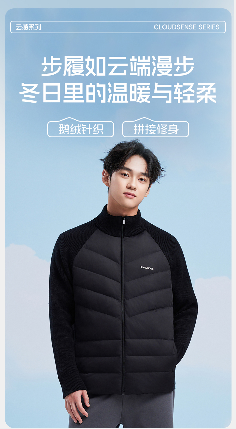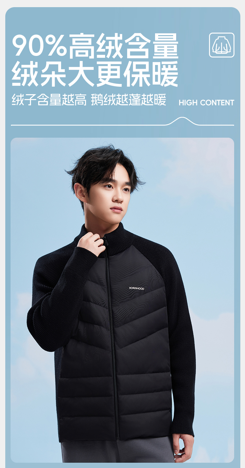 罗宾汉 【云感系列】 明星同款 男女款针织拼接 云栖轻薄鹅绒服