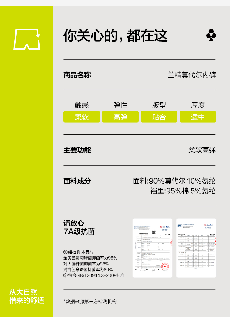有棵树莫代尔抗菌男士内裤3条装--U1116