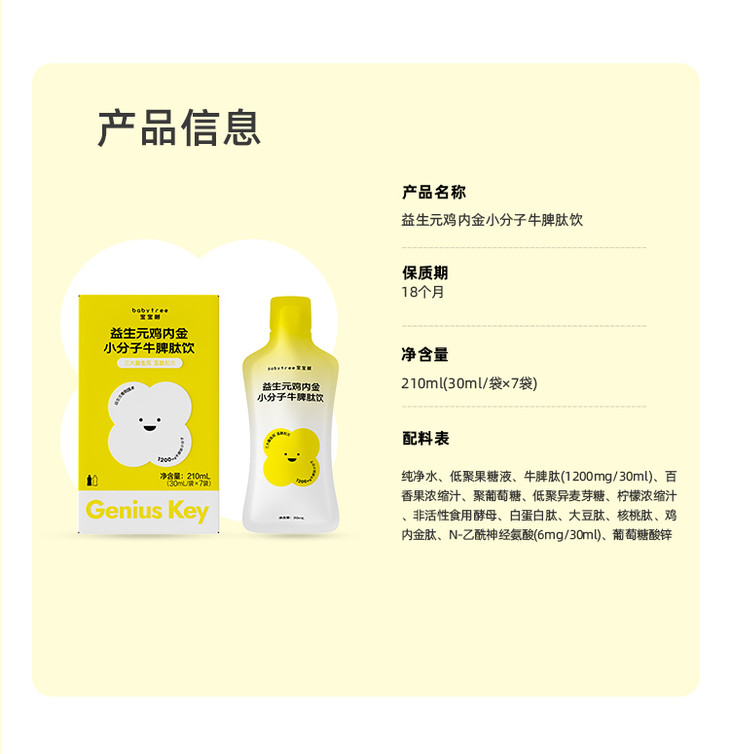 【特价福利】宝宝树益生元鸡内金小分子牛脾肽饮30ml