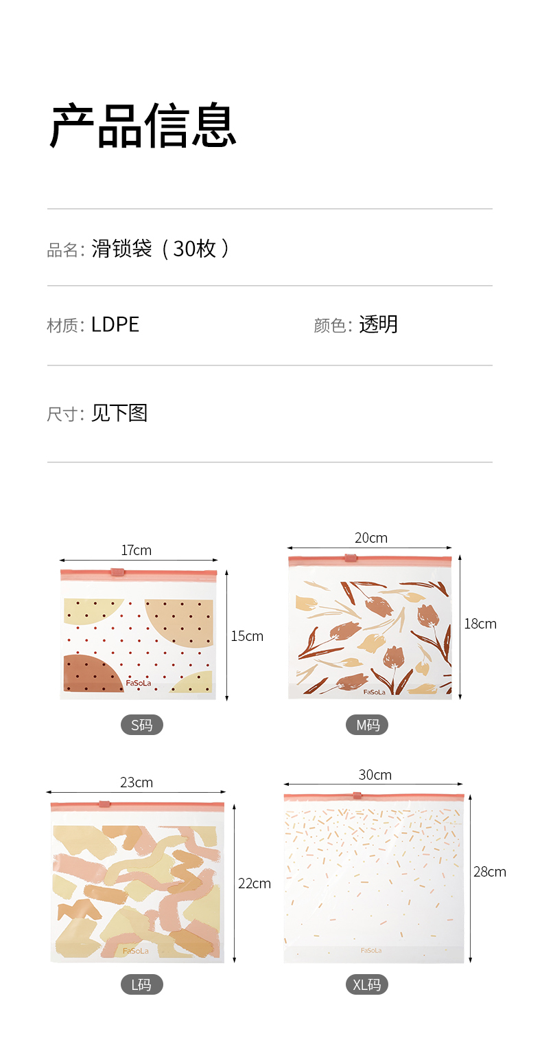 FaSoLa拉链式滑锁密封袋冰箱冷冻收纳自封分装保鲜袋可反复使用防水收纳包