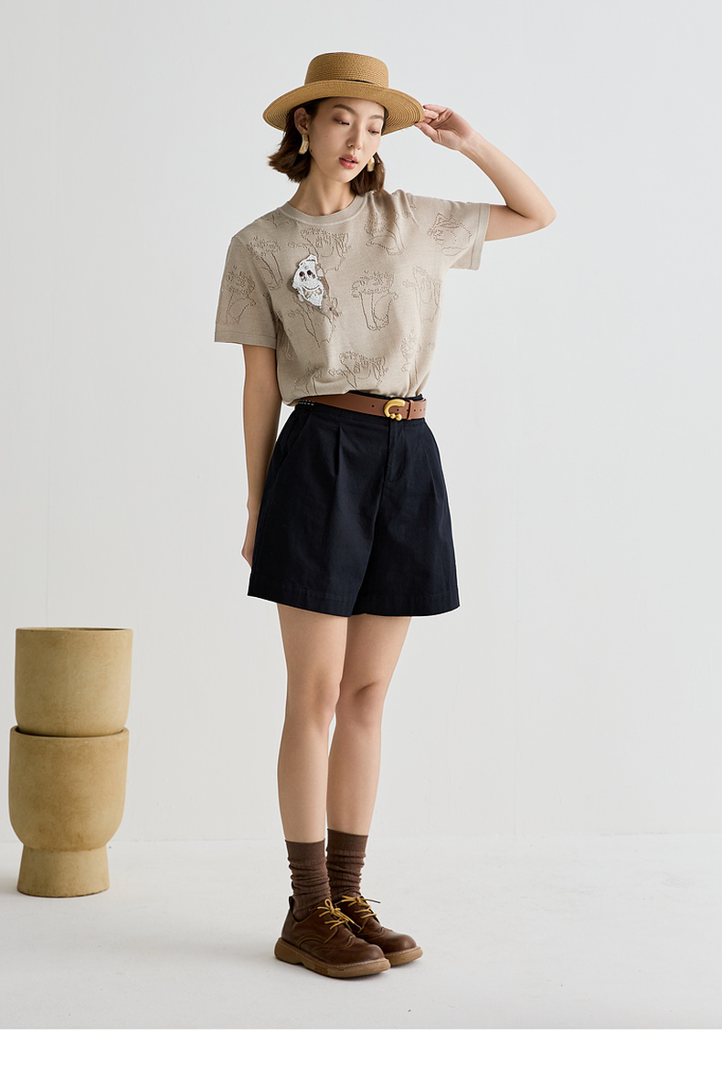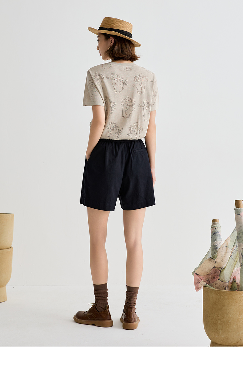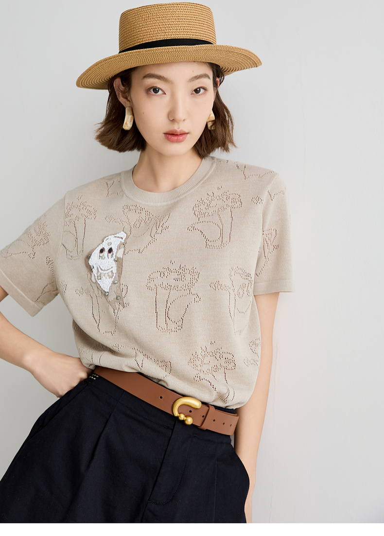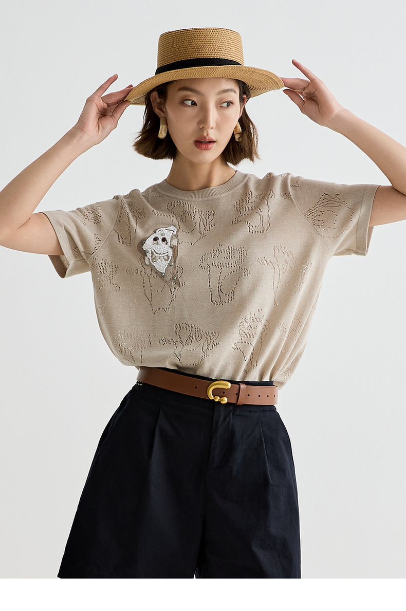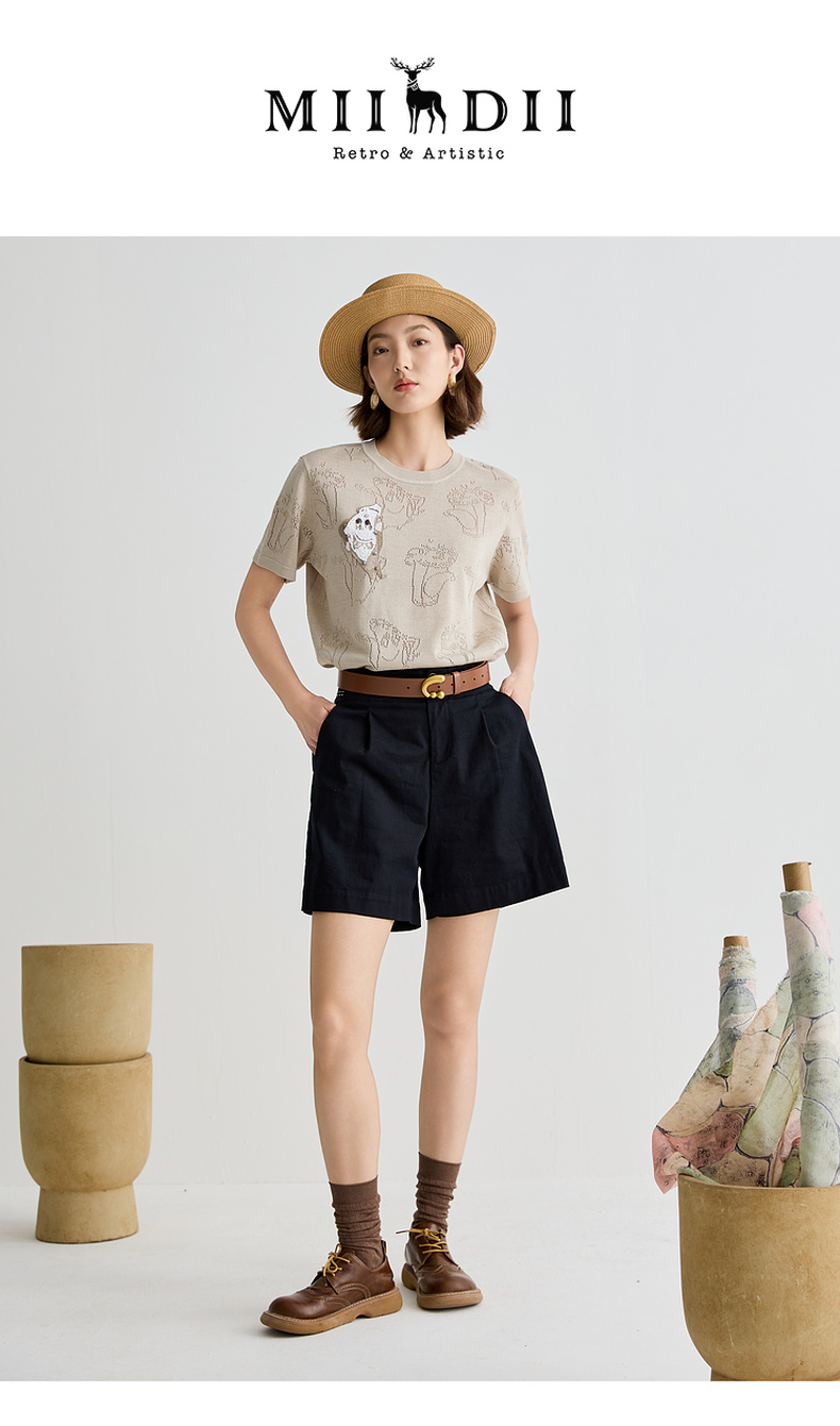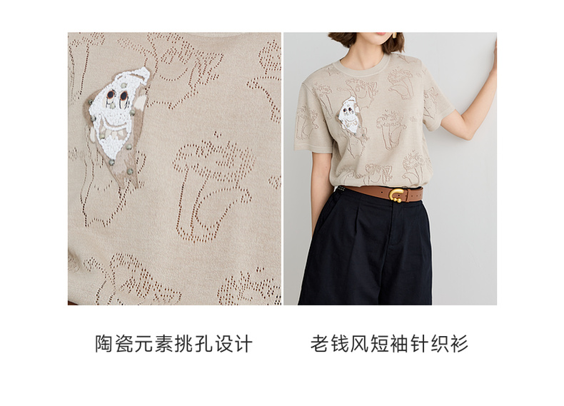 谜底针织衫短袖女2025夏季新品复古文艺宽松H型中长毛衣252MZ0893