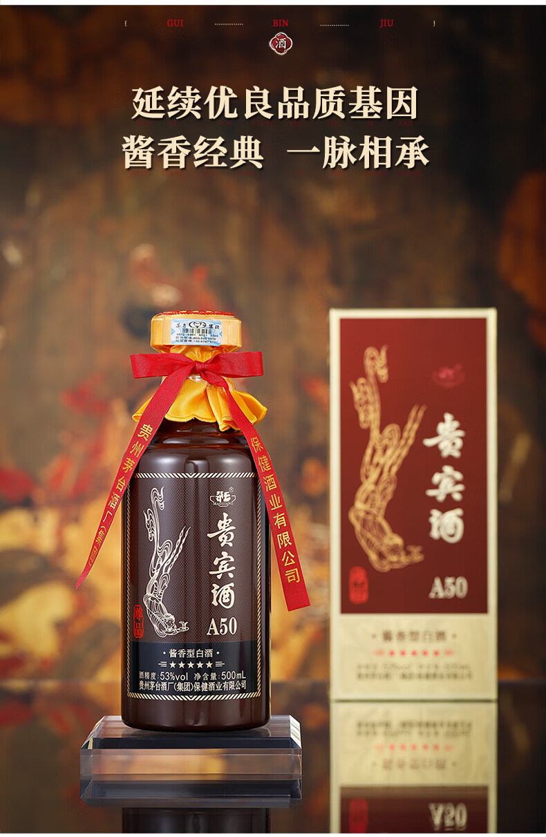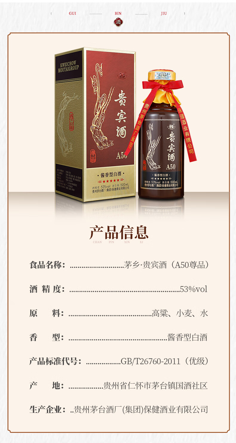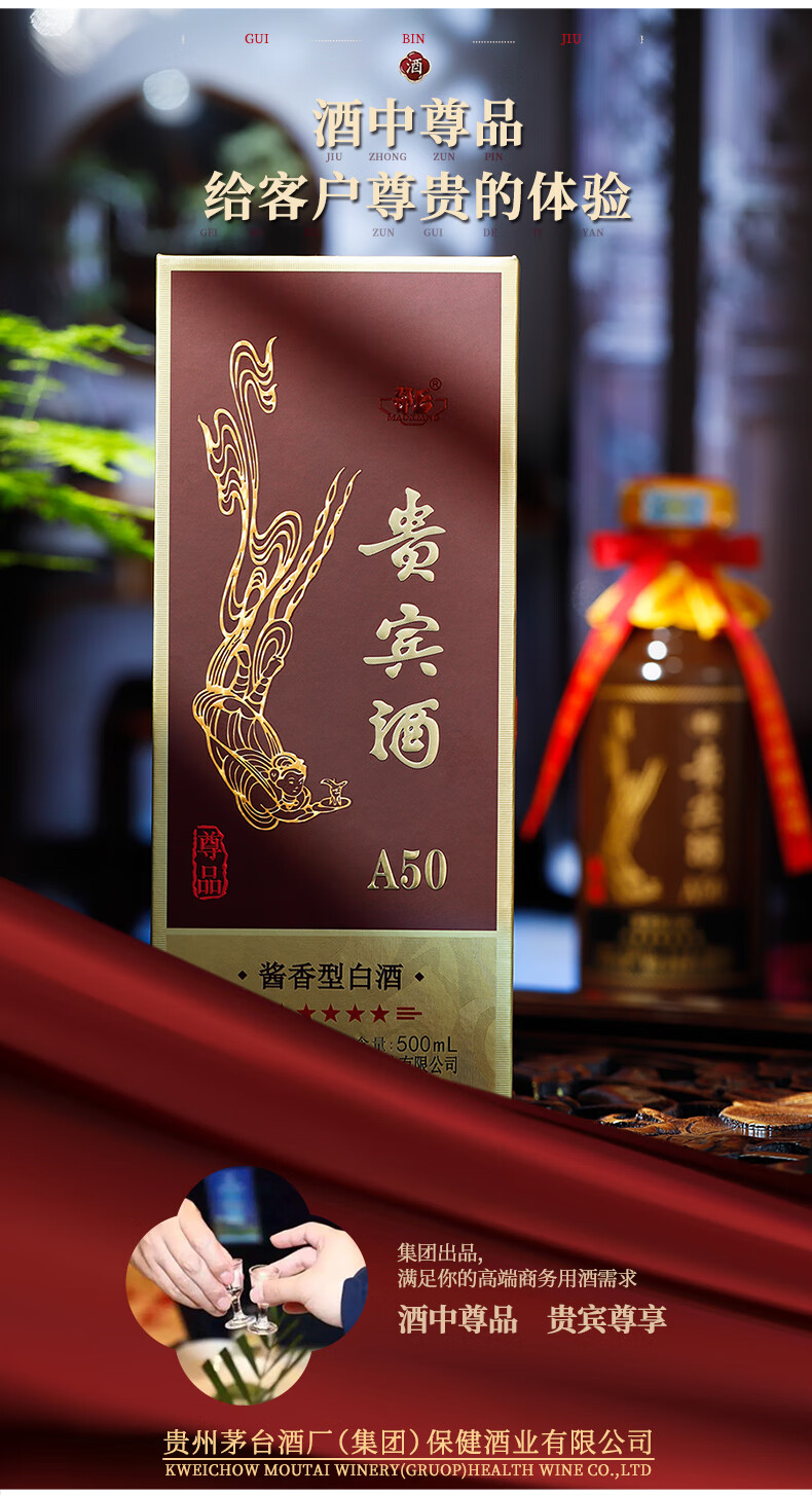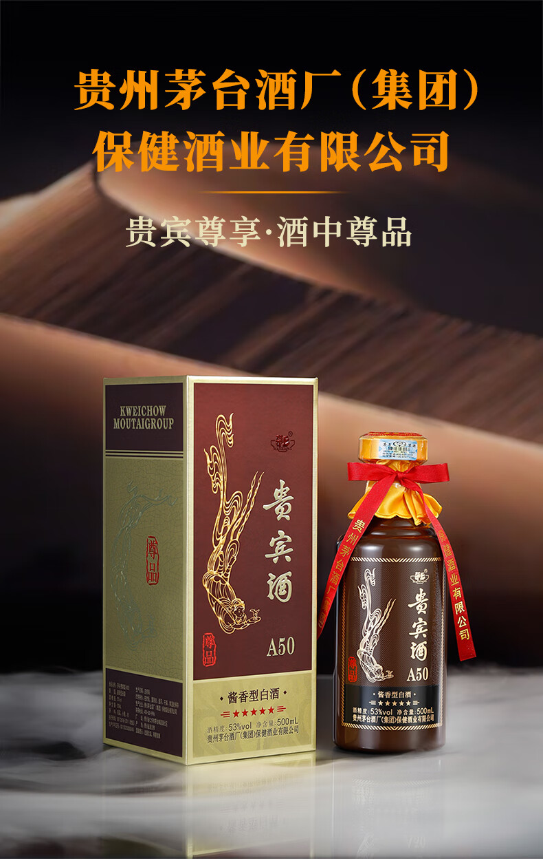 【自营】升级版贵宾酒A50尊品贵州茅台集团53度酱香型白酒 单瓶500ml/瓶*6瓶整箱装