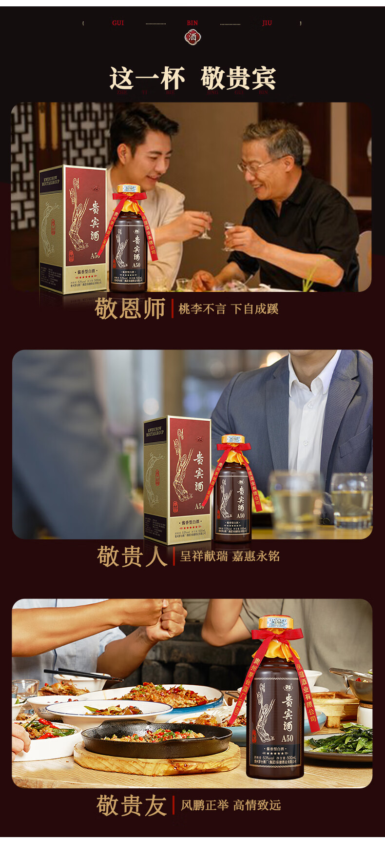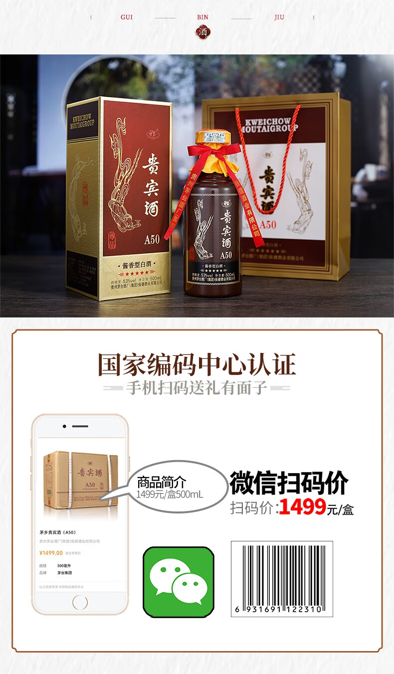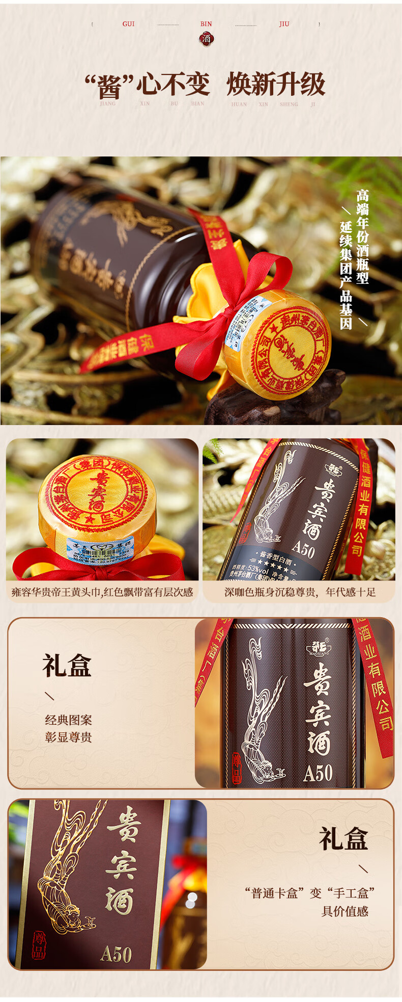 【自营】升级版贵宾酒A50尊品贵州茅台集团53度酱香型白酒 单瓶500ml/瓶*6瓶整箱装