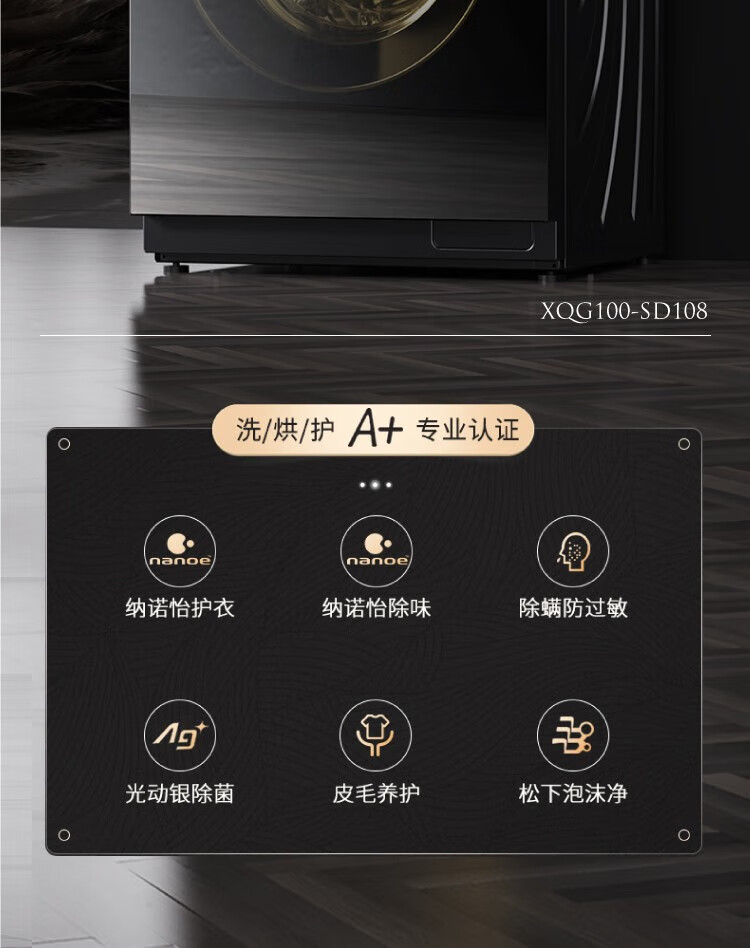 松下 XQG100-SD108 洗烘一体柜式镜面机门可嵌入式10公斤变频滚筒洗衣 全新