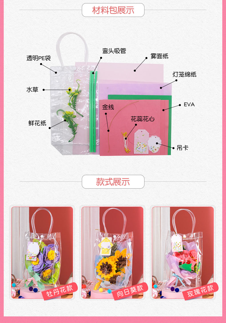 【教师节 手工花束】永生花 花束伴手礼袋(向日葵+玫瑰+牡丹)