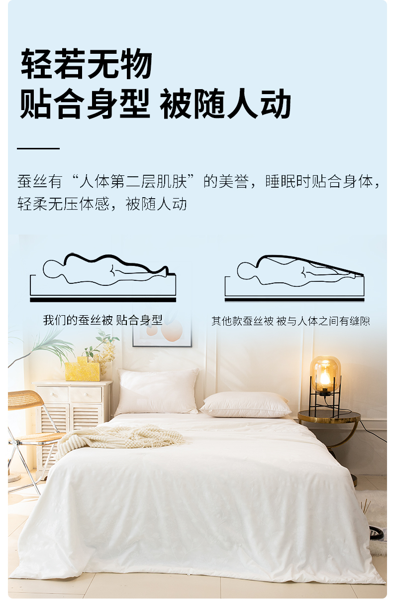 【繁花生活·有机蚕丝被】防蚊防螨 10A抗菌 轻柔舒适不压身 四季适用 1500g/2m*2.3m