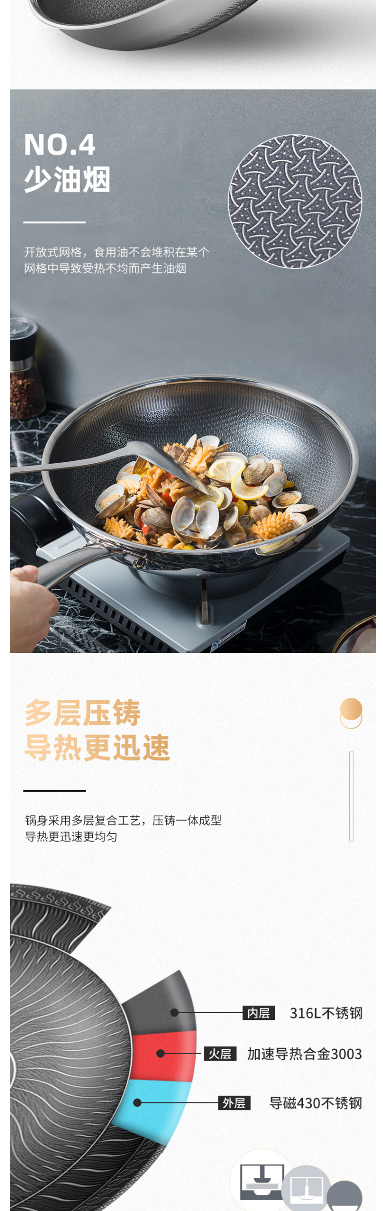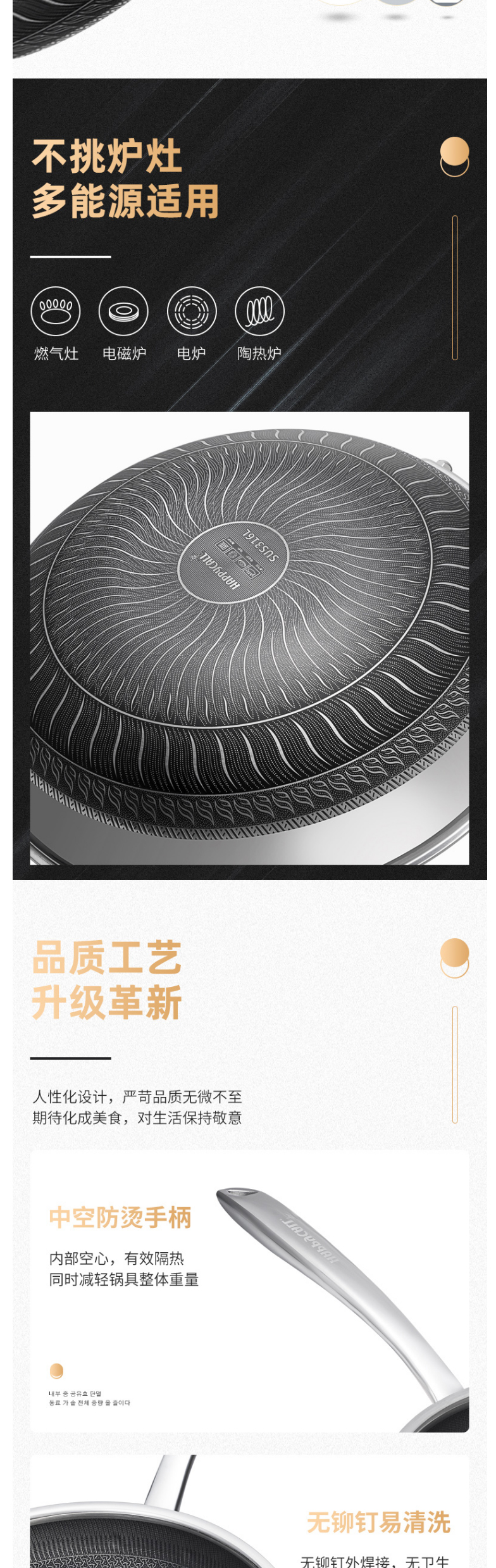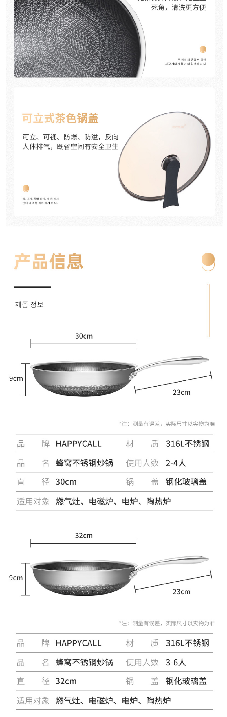 HAPPYCALL欢乐锅原装不锈钢蜂窝锅健康不粘锅 无油烟炒锅炒菜锅不挑炉灶 3500-8616