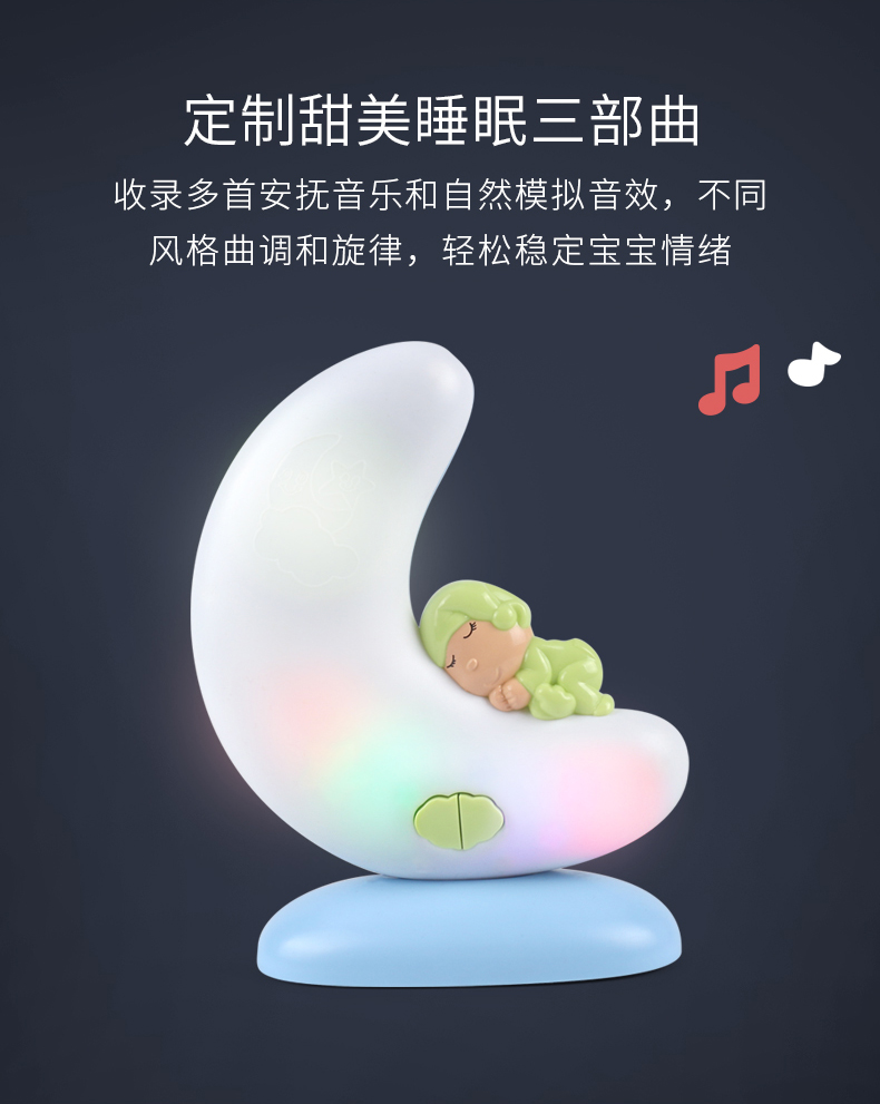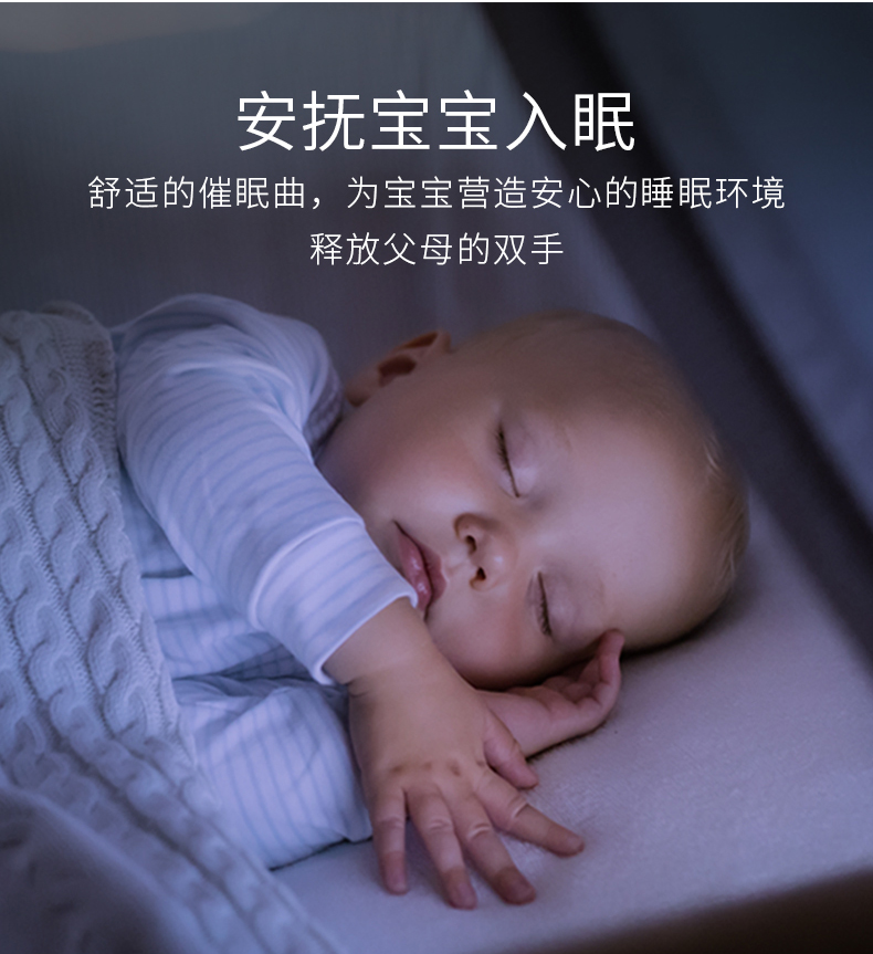 柔和的灯光伴着宝宝熟悉的心跳声入睡,加上轻柔的安抚音乐,真的给足宝宝安全感!