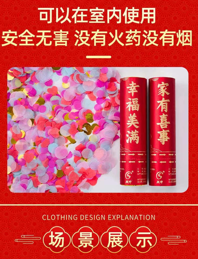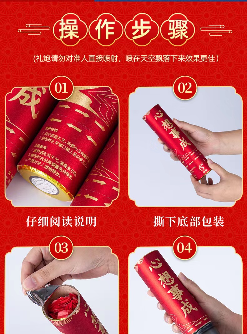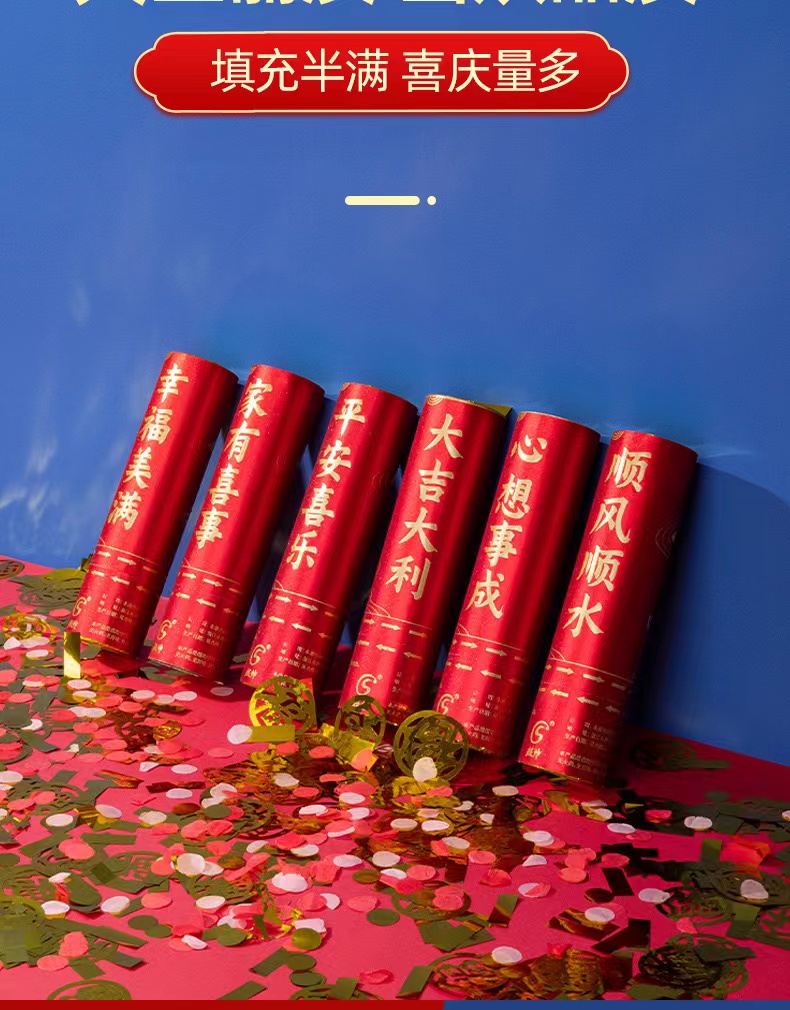 超帅喜庆礼炮礼花中式婚庆礼炮喷花筒新升级派对喜庆结婚用品婚礼庆典礼花炮手拧礼花筒20cm6个/组