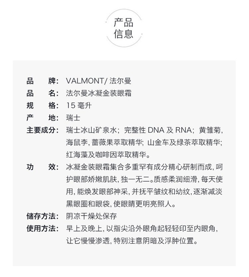 瑞士法尔曼 冰凝金装眼霜15ml
