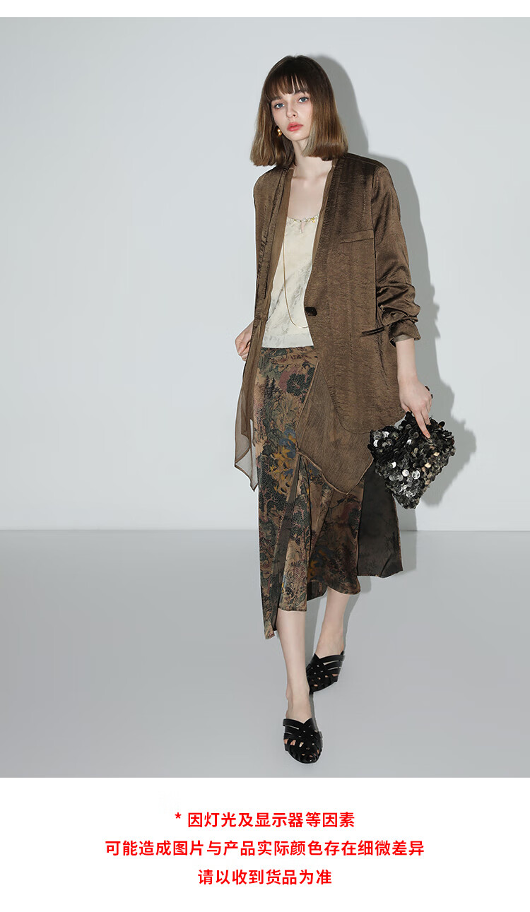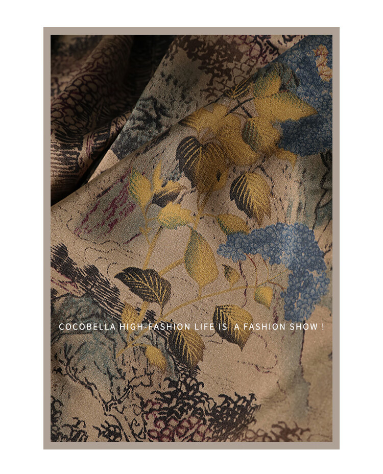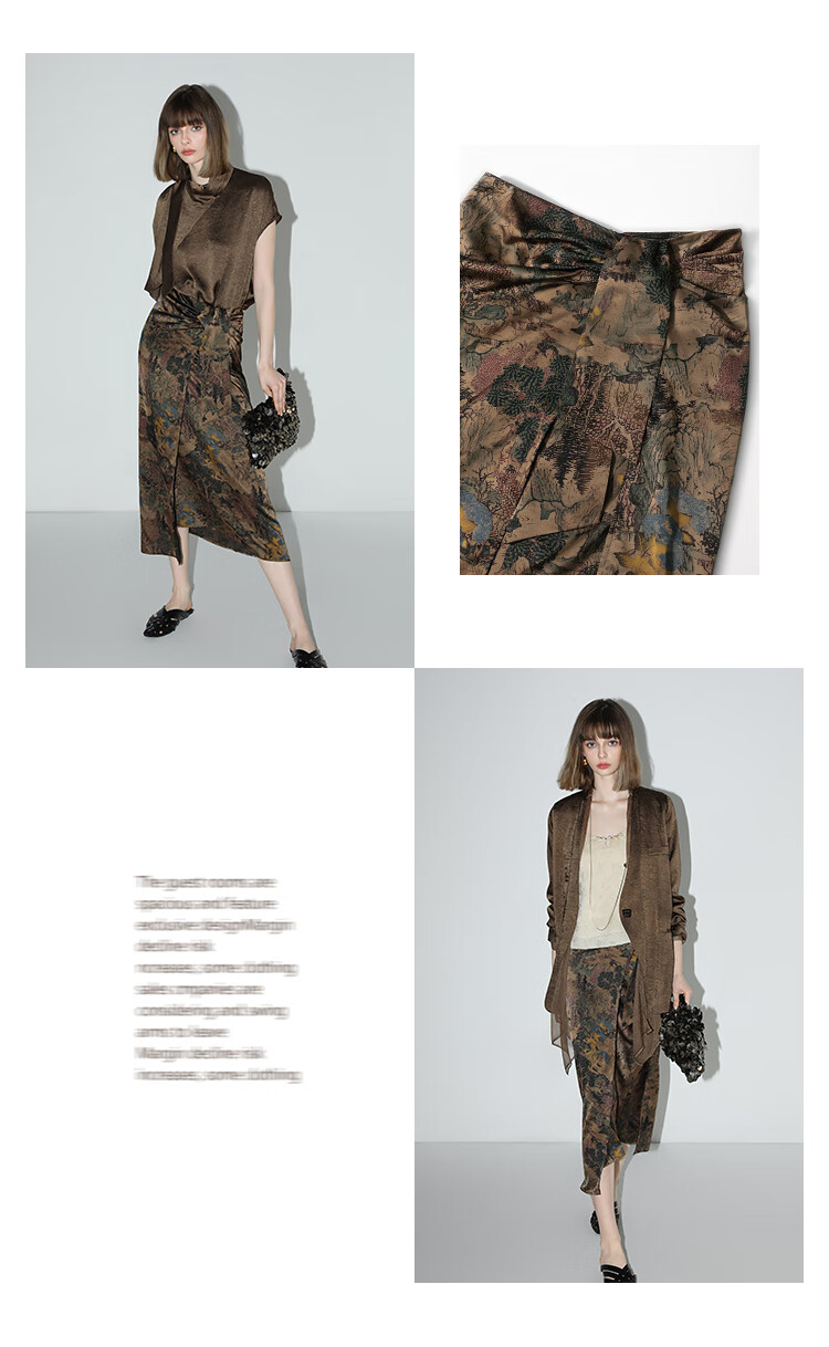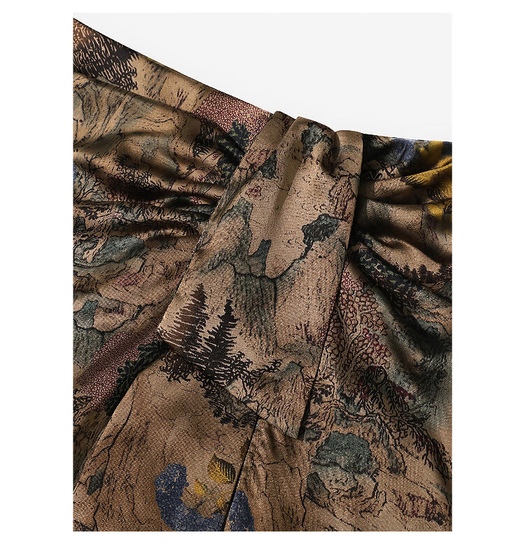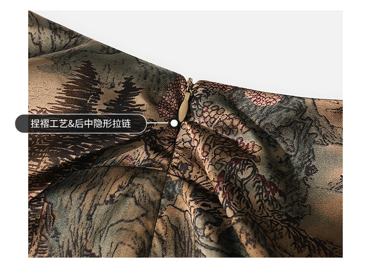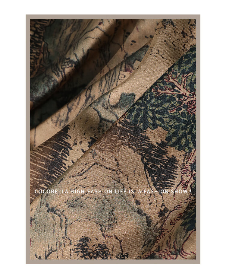 【限时秒杀】COCOBELLA轻奢新国风飘带印花半身裙高腰捏褶缎面筒裙HS0018